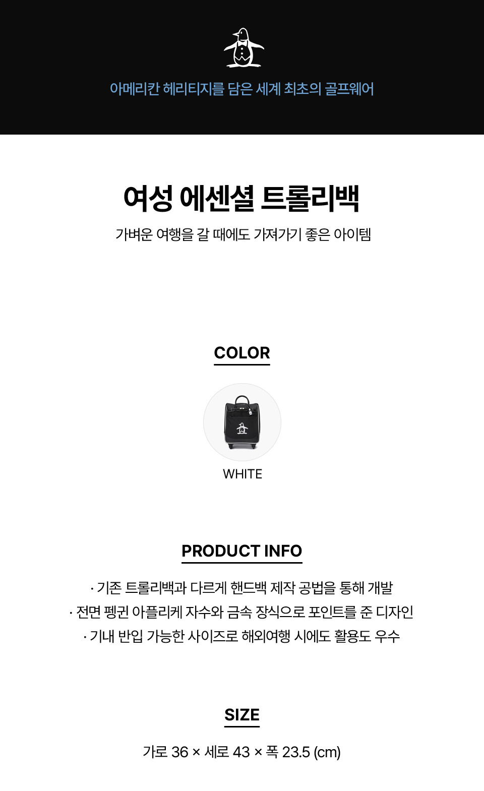 [먼싱웨어] 여성 에센셜 트롤리백 블랙 MR122LTB21