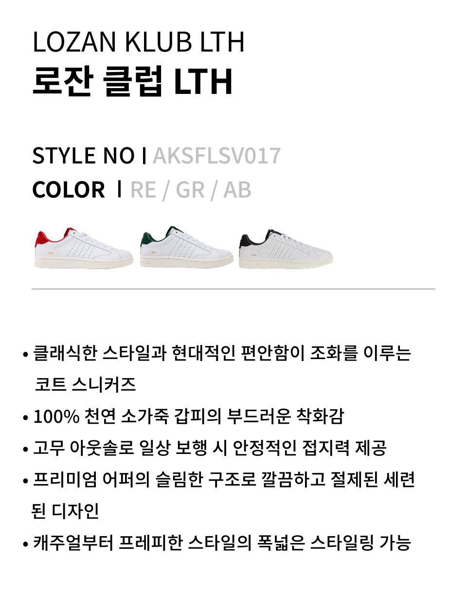 | 소재 | 갑피: 천연가죽 100% / 창: 합성고무 |