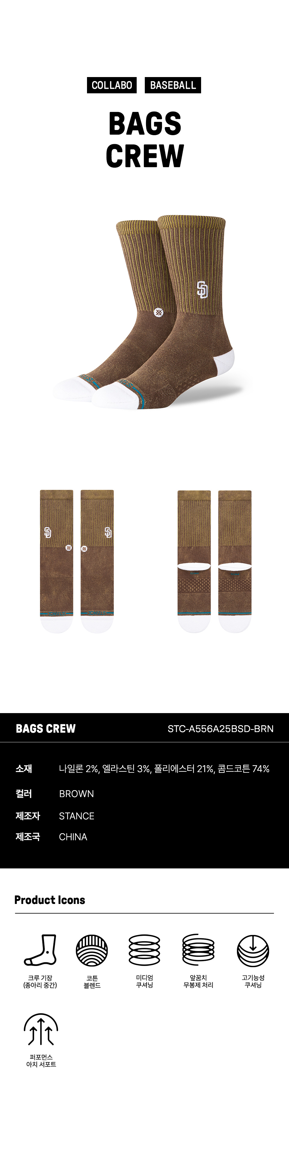 [MEN] [MLBX STANCE] 백스 크루 STC-A556A25BSD-BRN