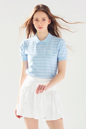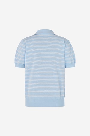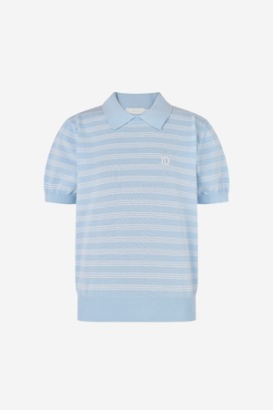 스트라이프 라운드 넥 카라 니트 S/BLUE