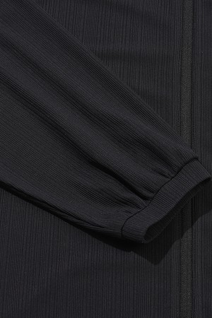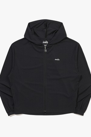 시어 골지 후드 집업 우먼 BLACK