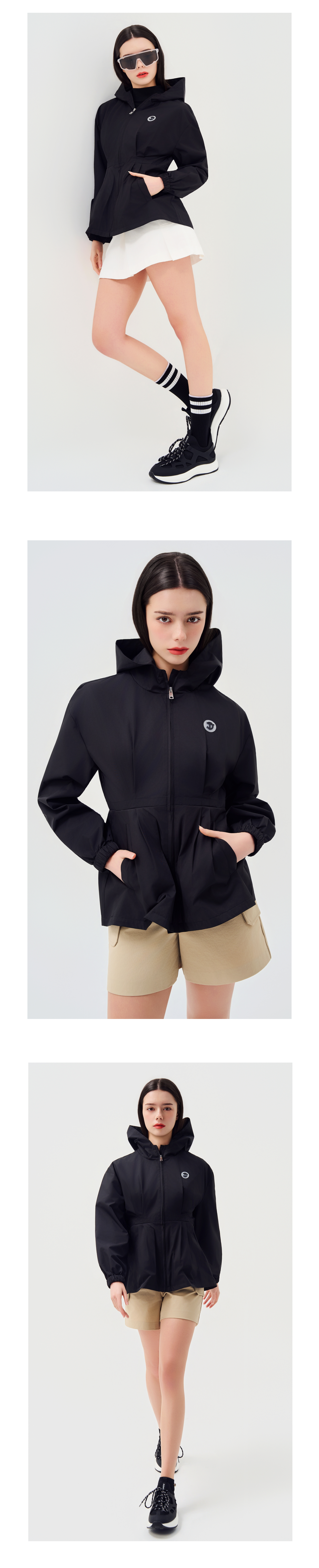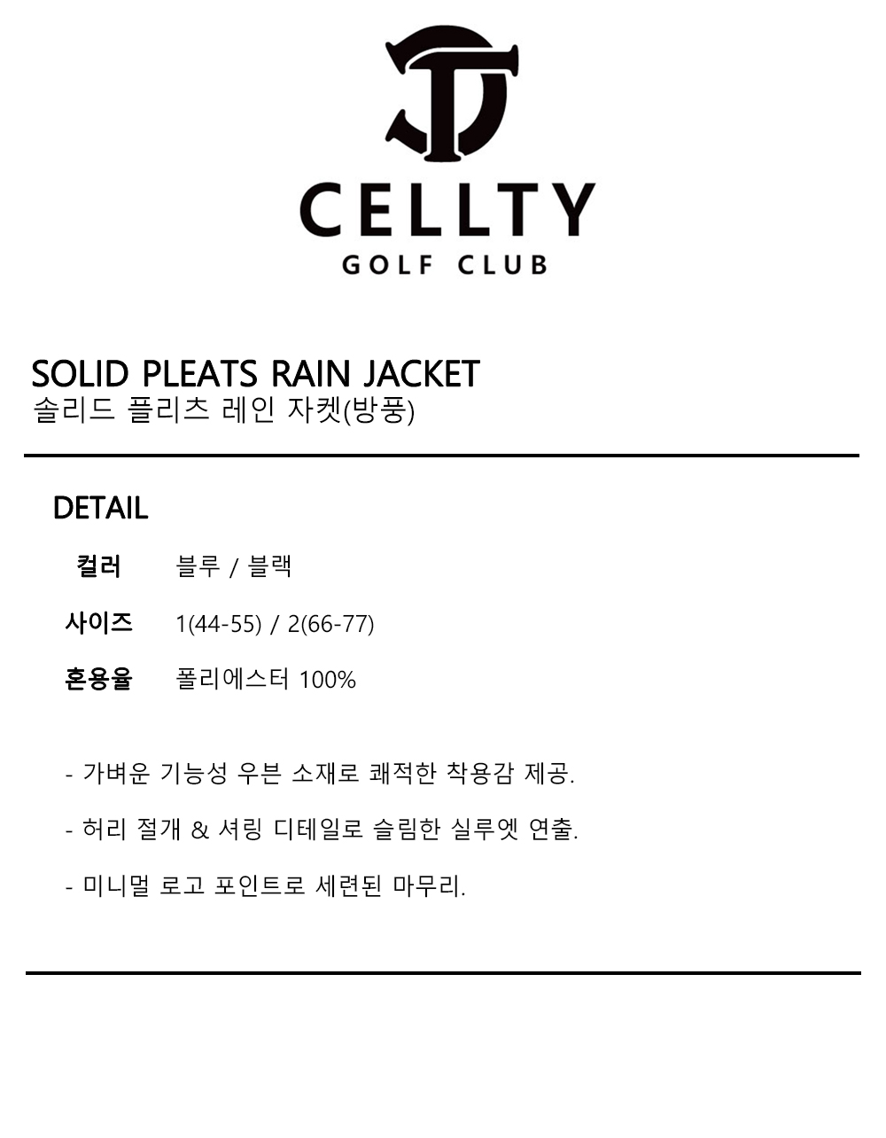 솔리드 플리츠 레인 자켓(방수)