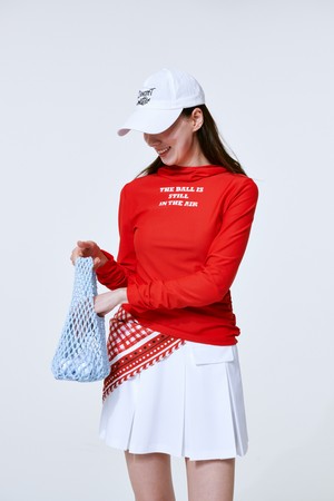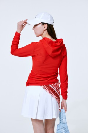 강렬한 레드 컬러가 돋보이는 스포티한 무드의 후드 저지입니다.