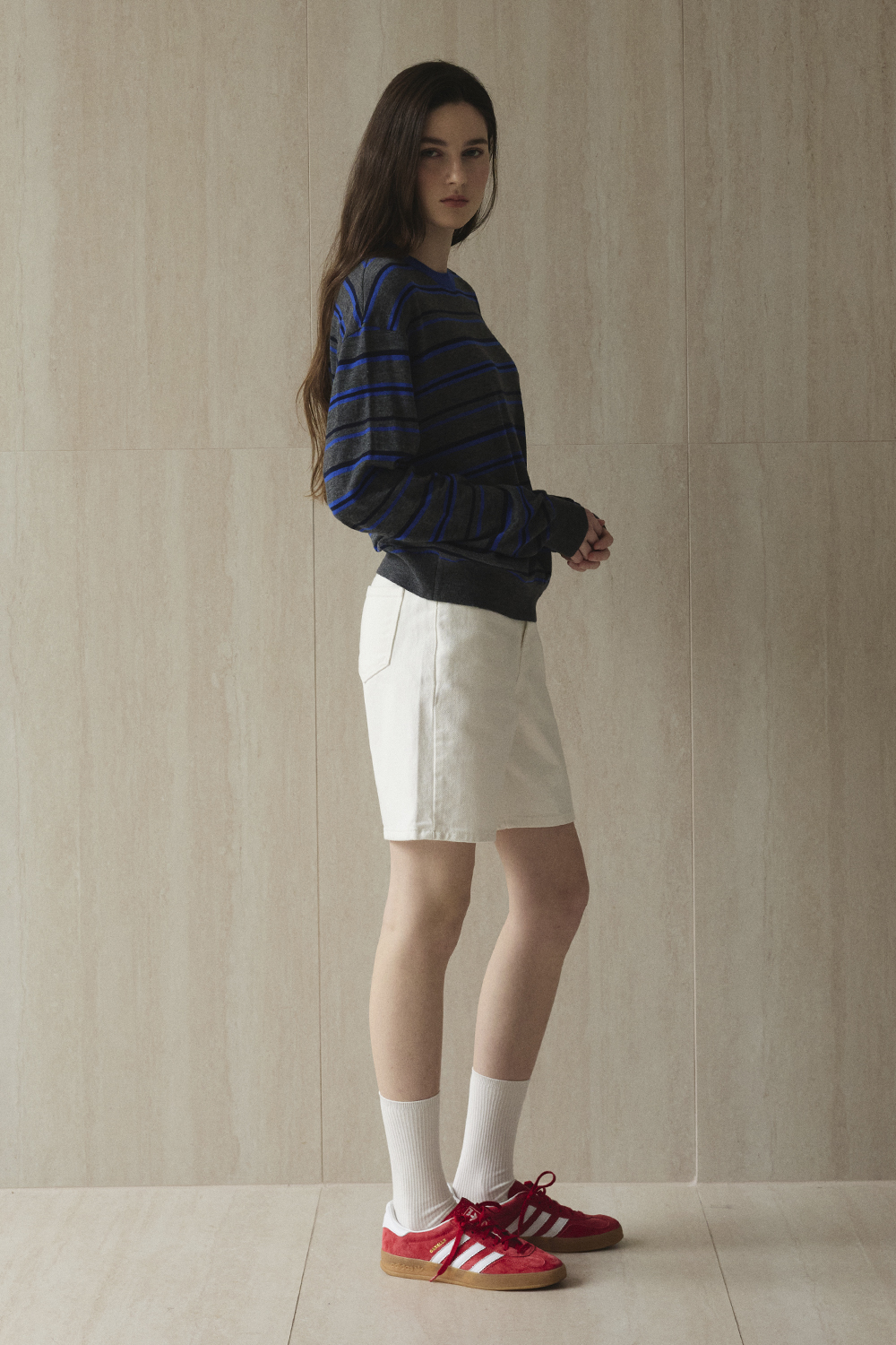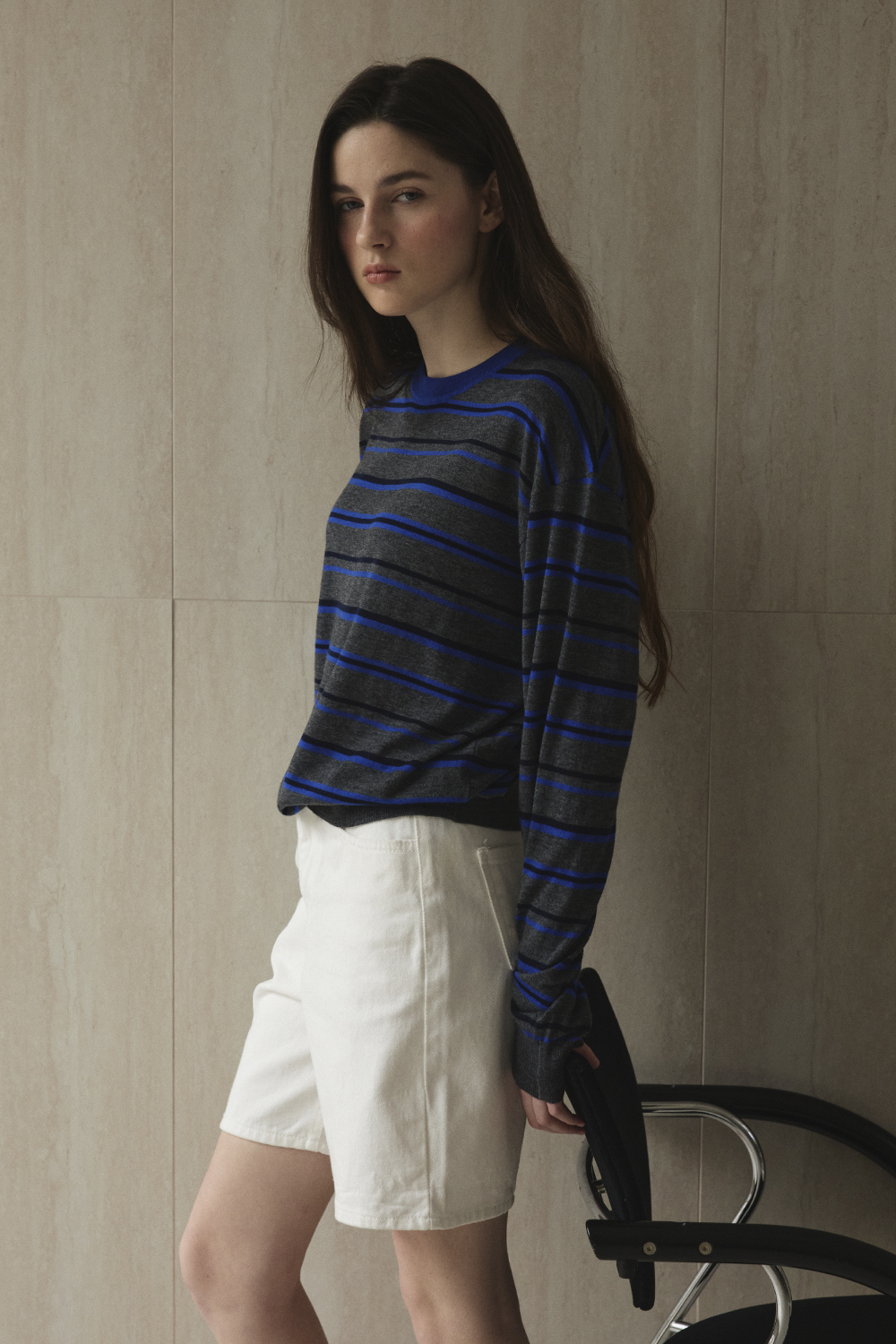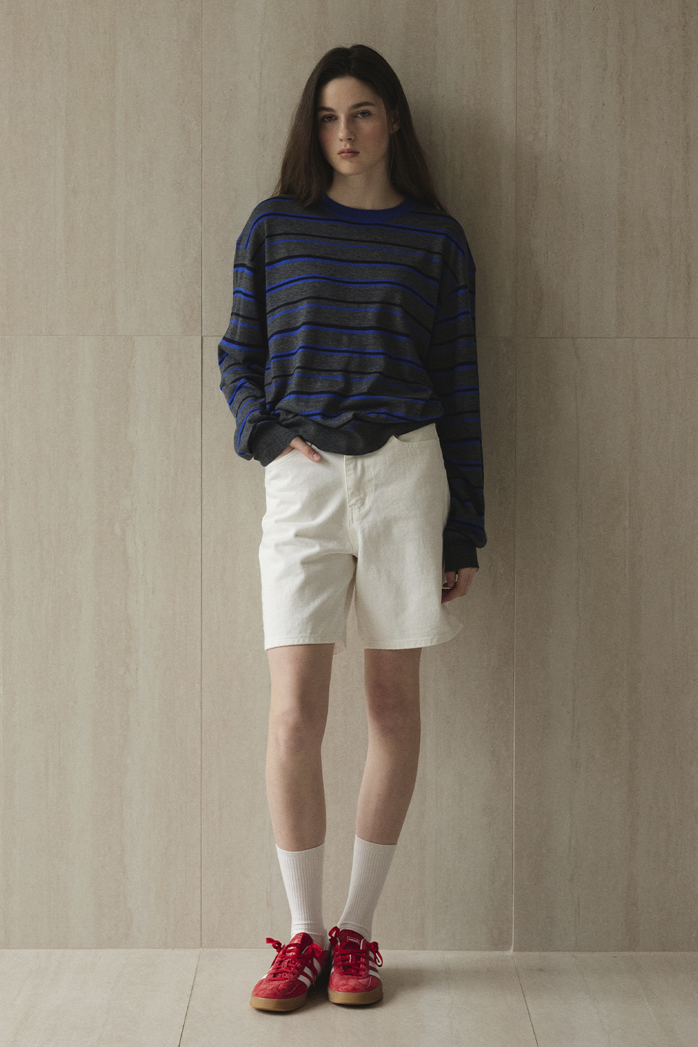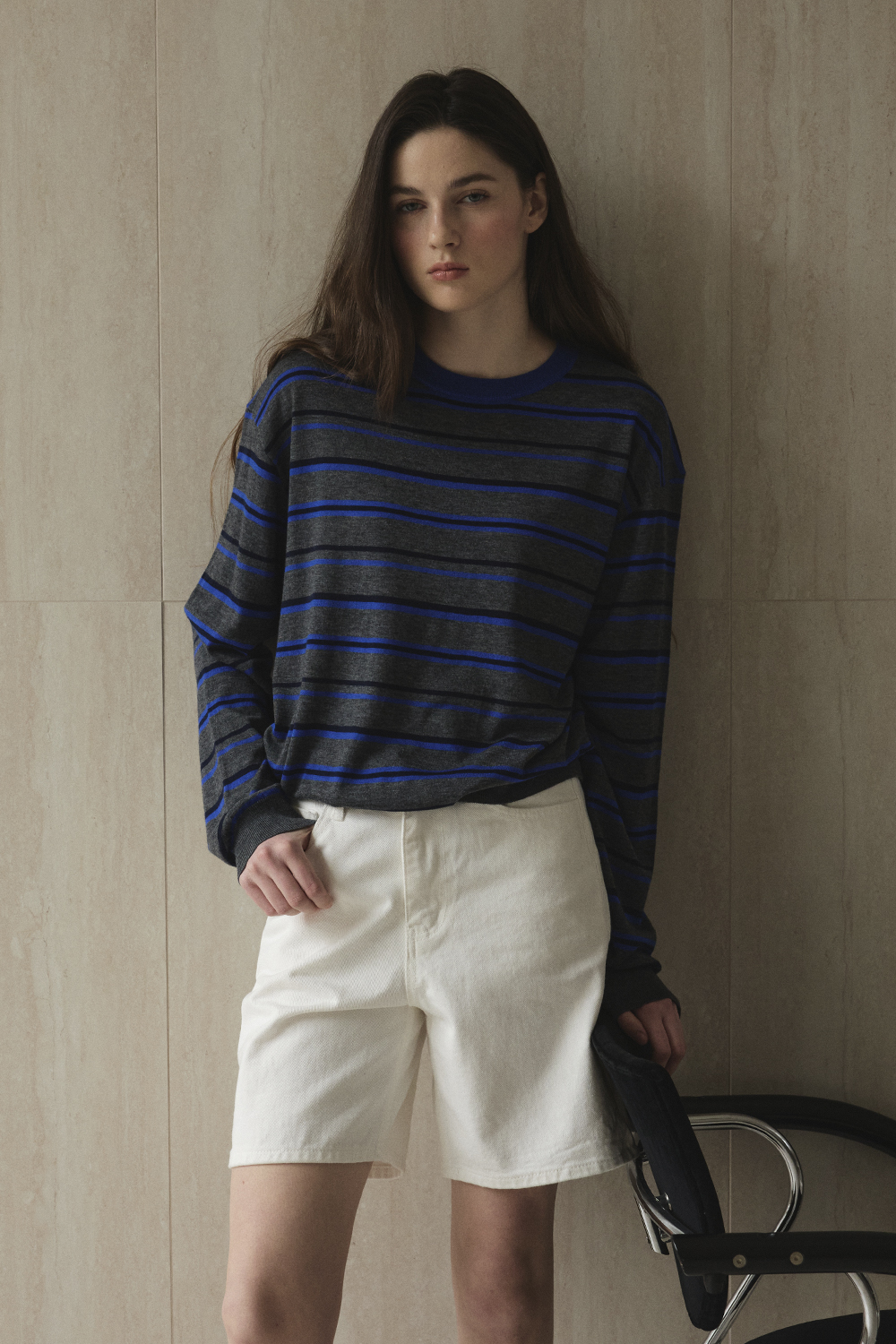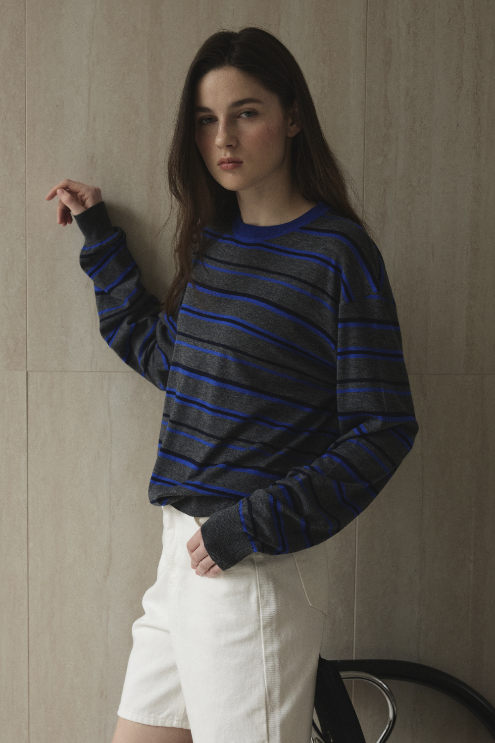 배색 스트라이프가 포인트가 되는 니트입니다.