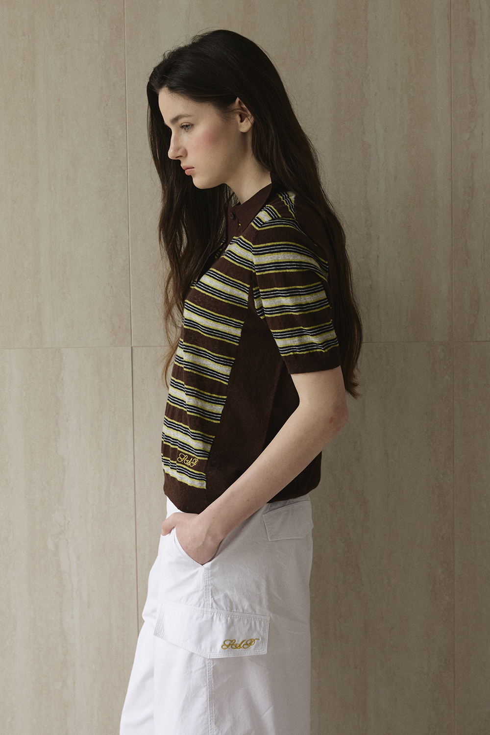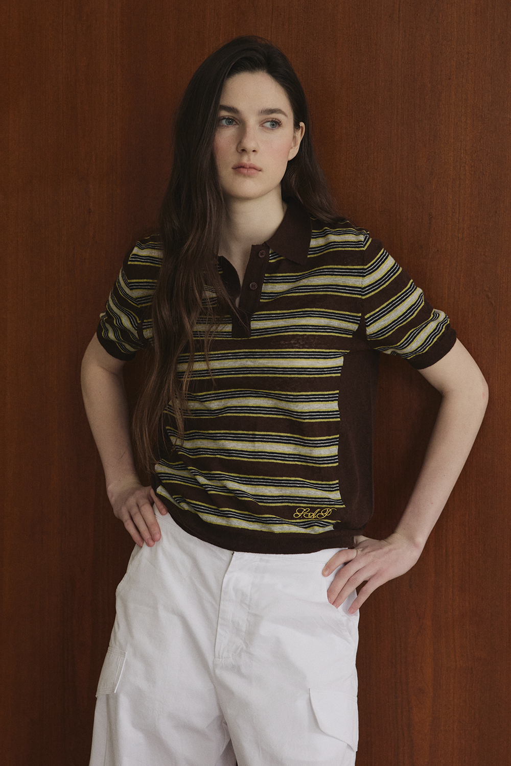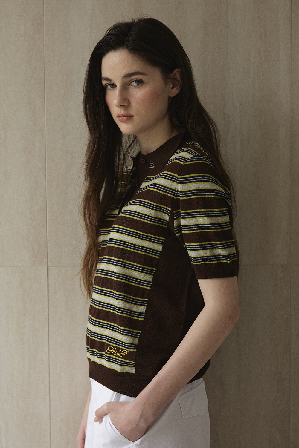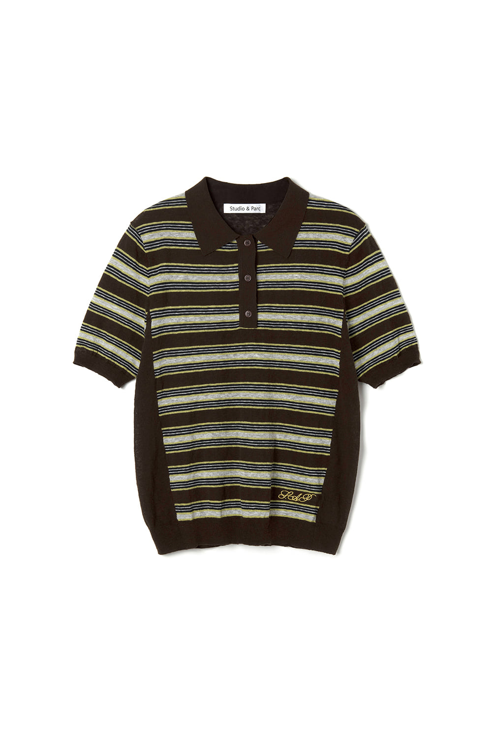 Striped Collar Short Sleeve Knit_Brown