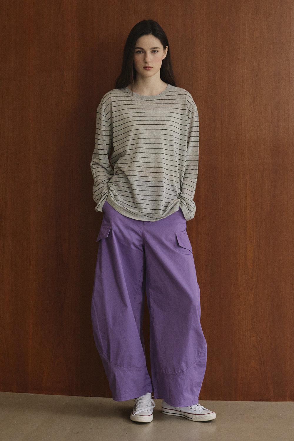 부드럽게 떨어지는 실루엣으로 단독 착용은 물론 다양한 아우터와 매칭하기 편안합니다.