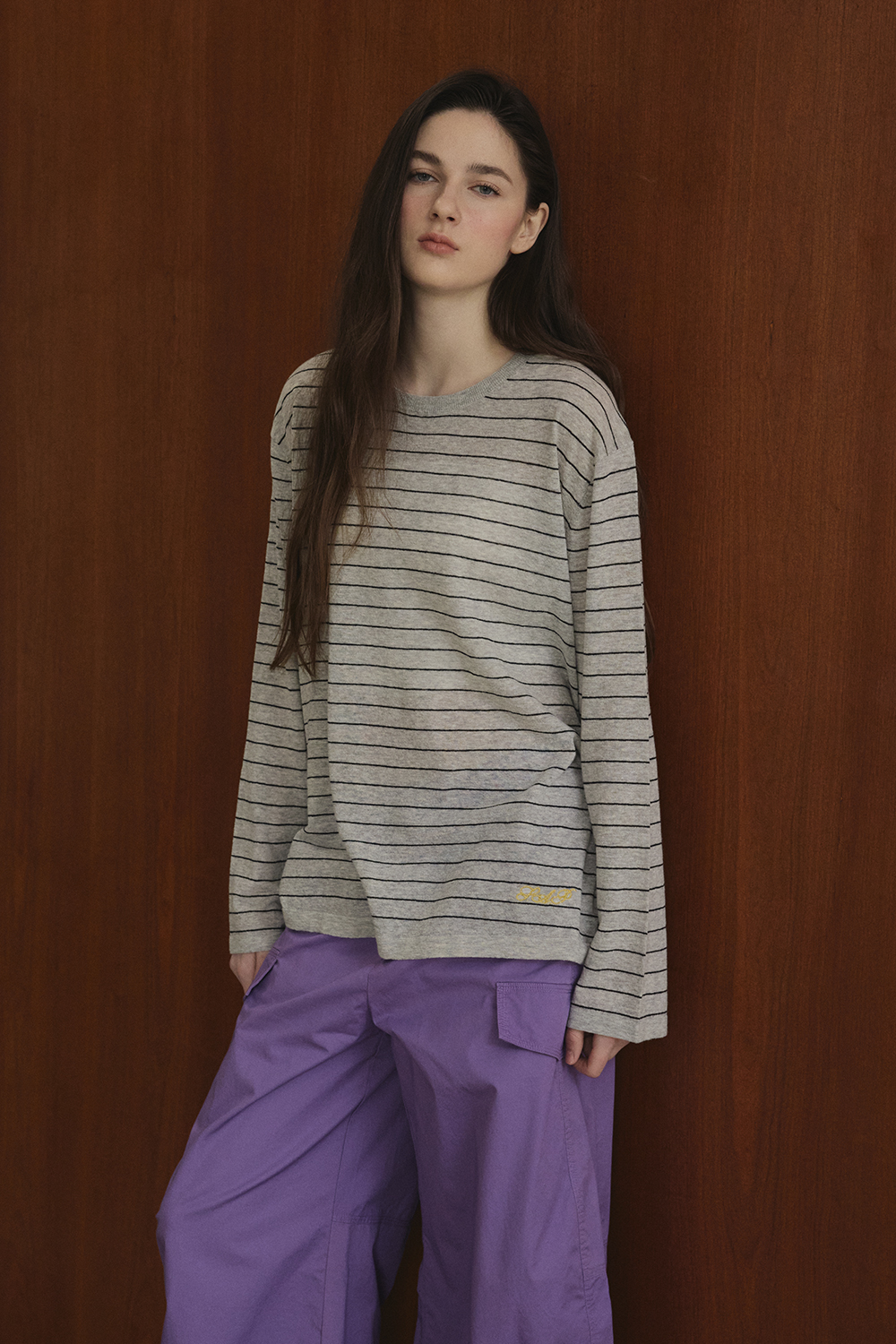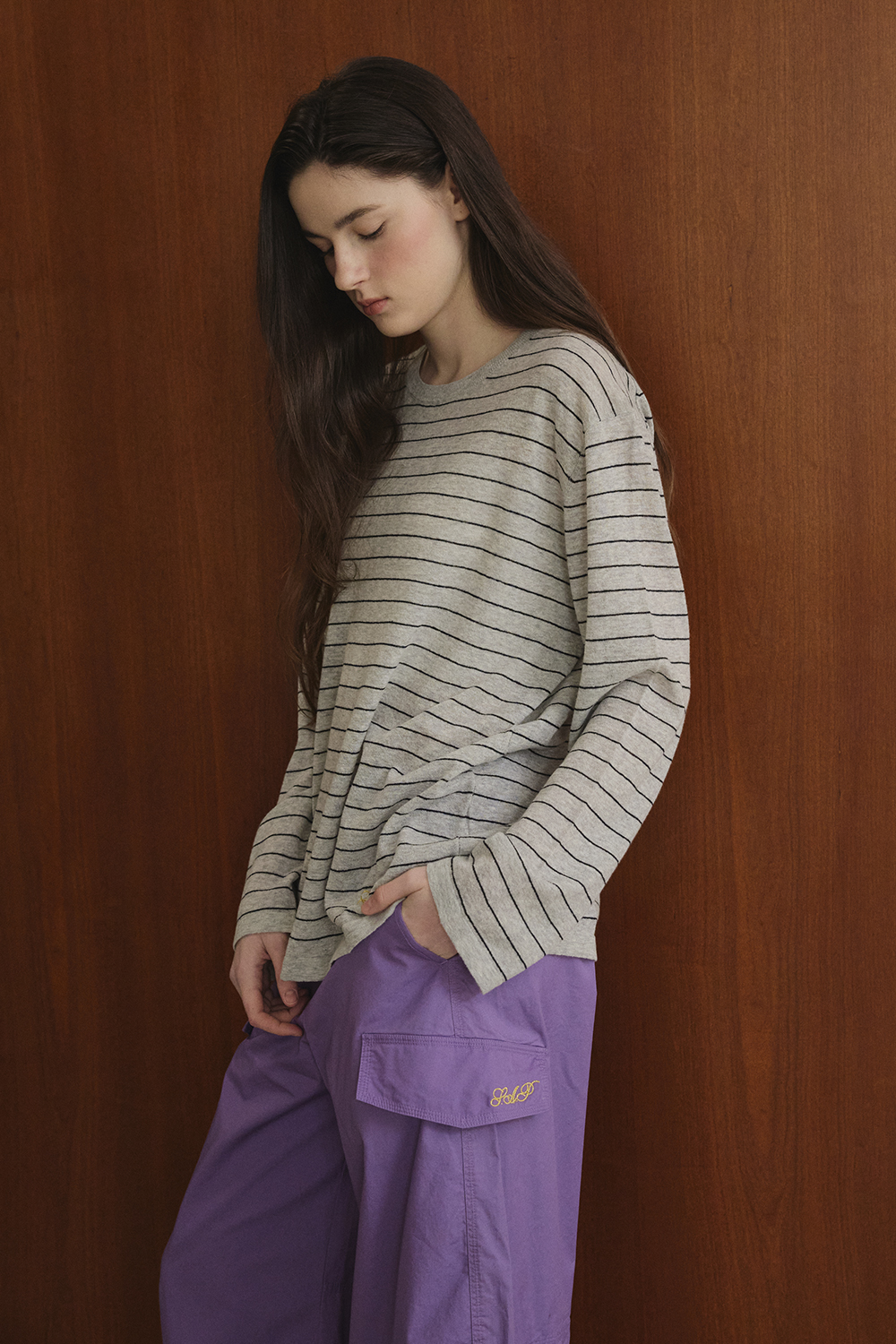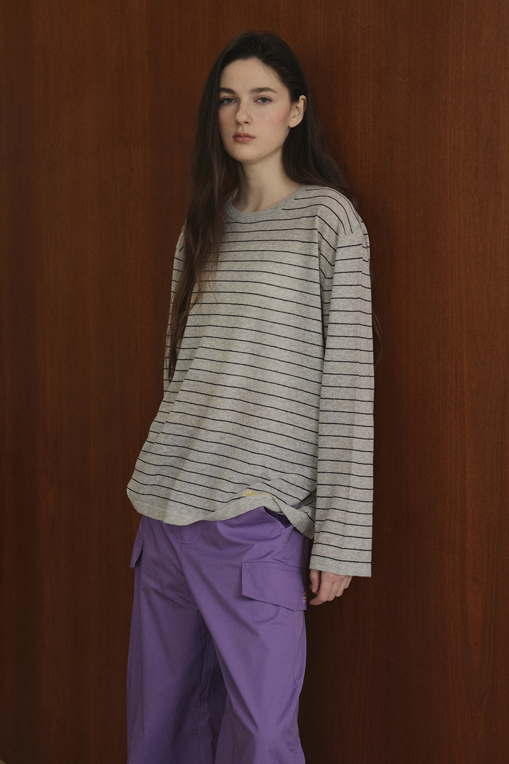 잔잔한 스트라이프 패턴이 담백한 분위기를 주는 니트입니다.