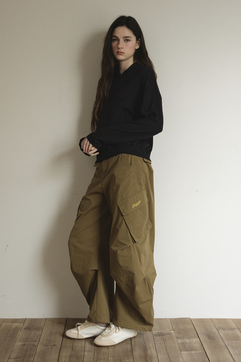허리단에 더해질 골드 자수 로고가 고급스러운 포인트를 완성합니다.