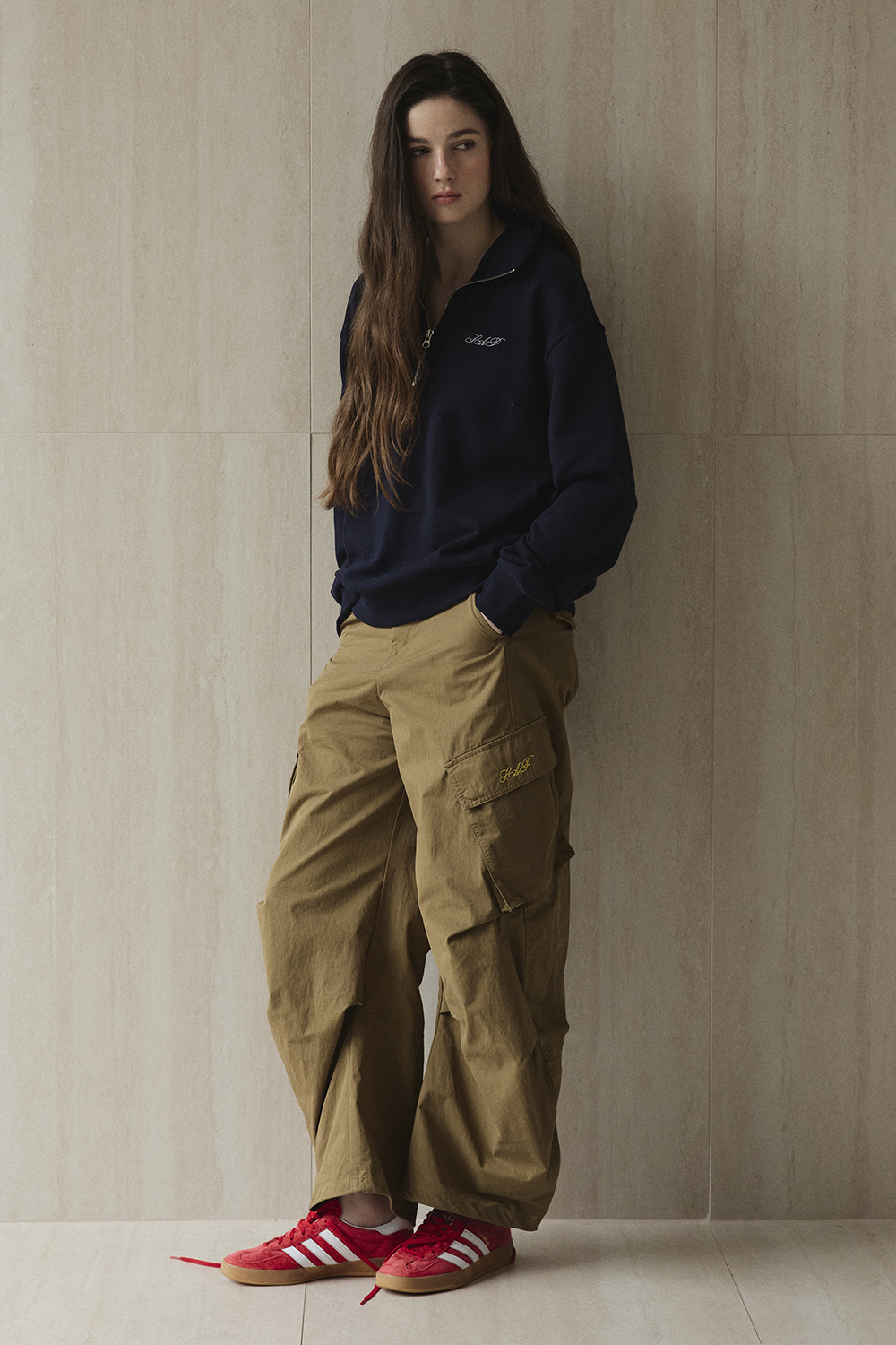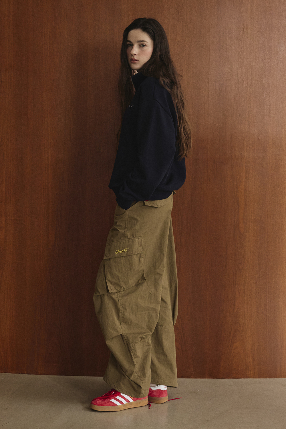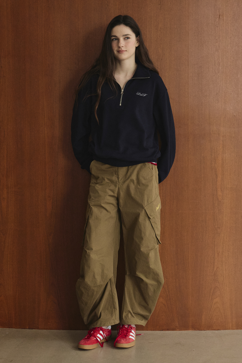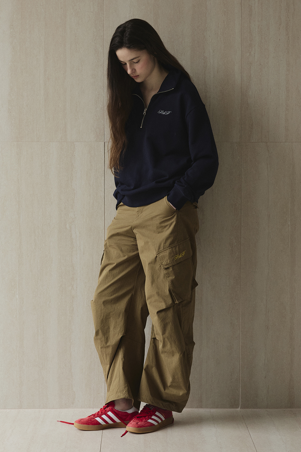 가슴의 미니 로고 자수가 은은한 포인트가 되어 다양한 코디에 활용하기 좋습니다.
