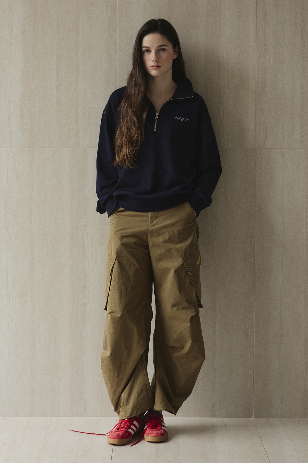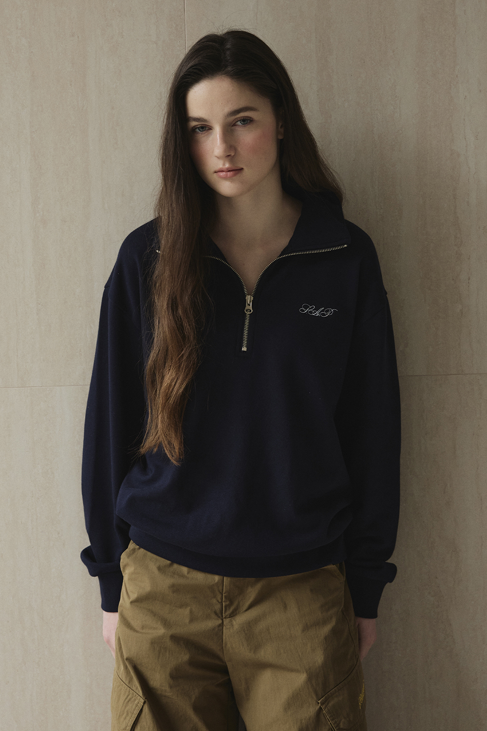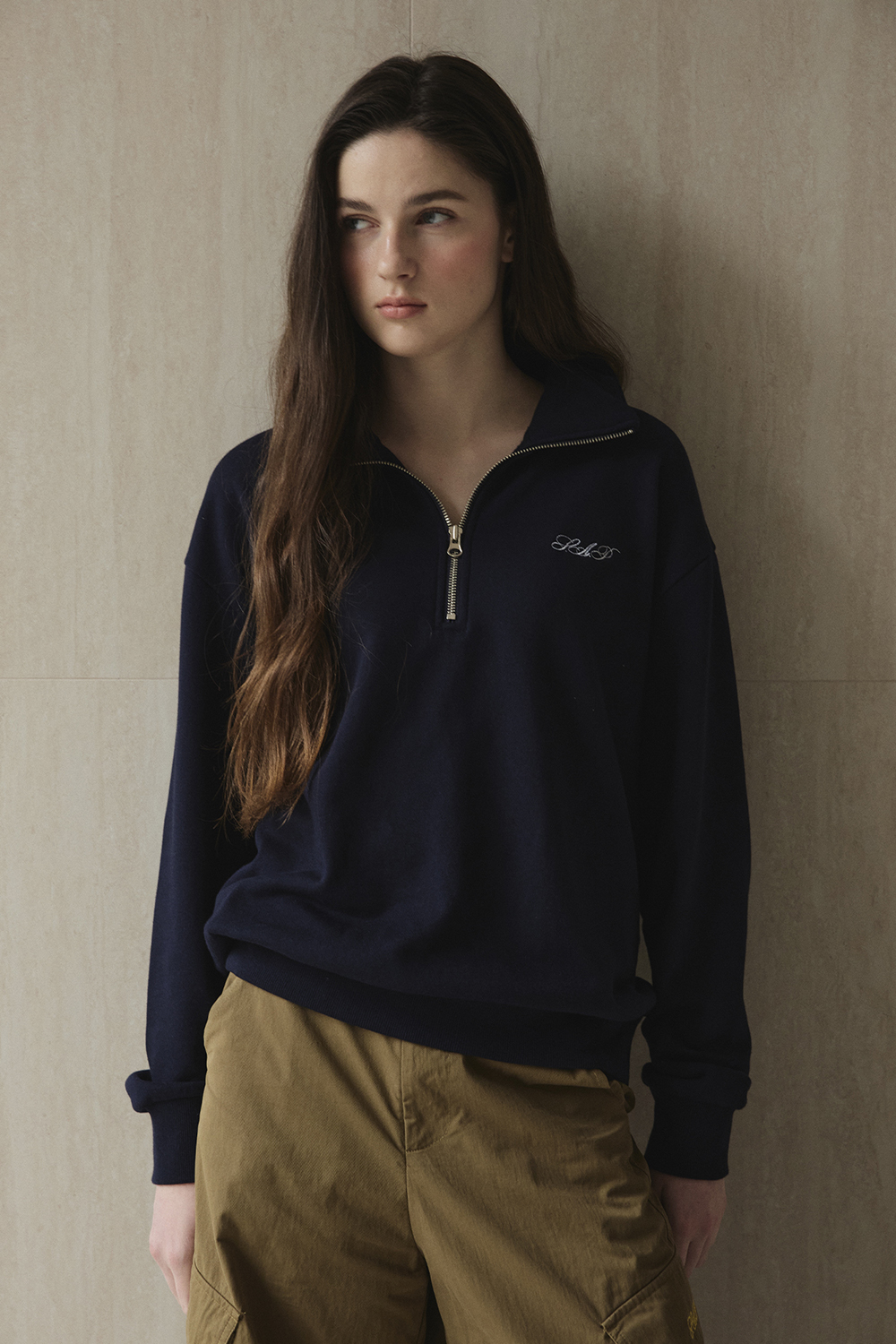 하프 집업 디테일을 더한 스웻셔츠입니다.
