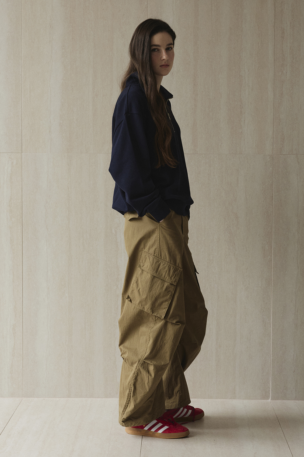탄탄한 면 혼방 소재로 형태 안정성과 편안한 착용감을 갖추었습니다.