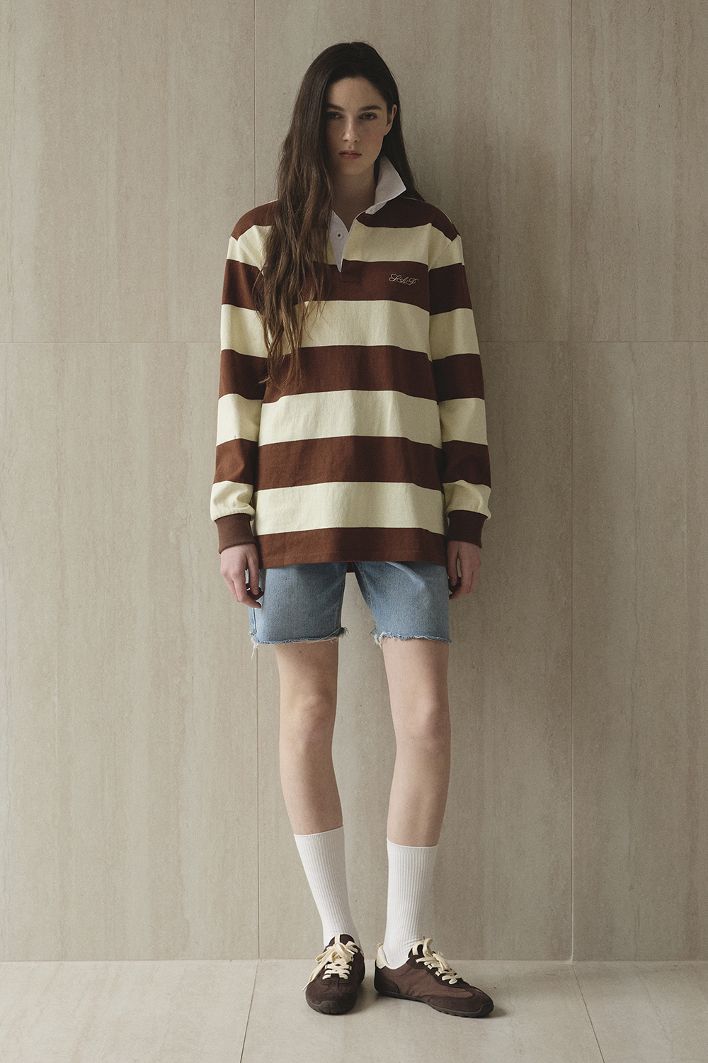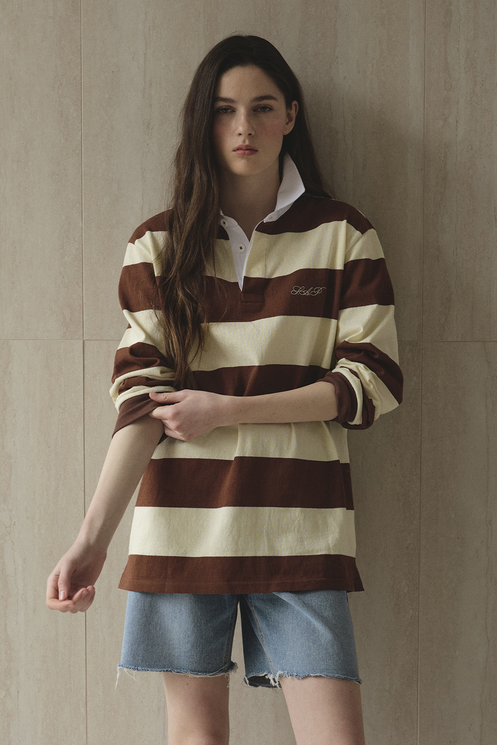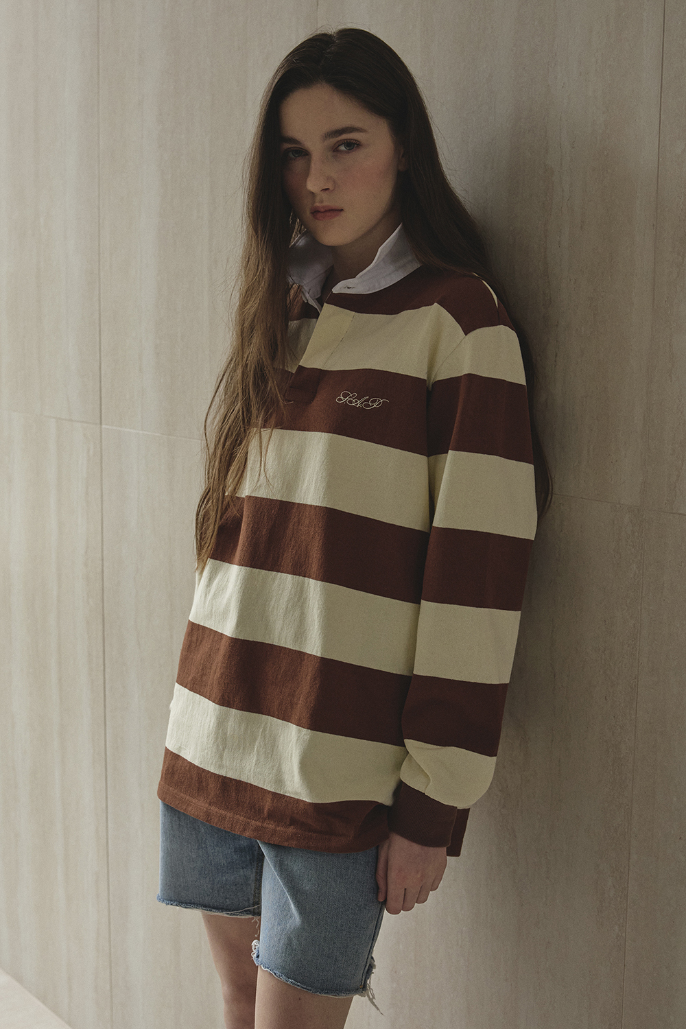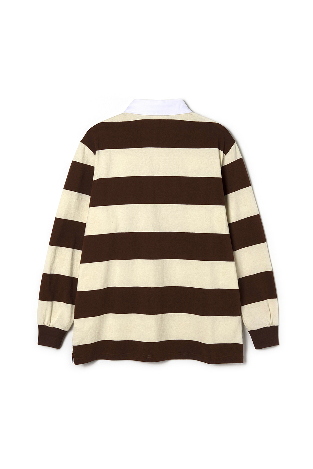 클래식한 와이드 스트라이프 패턴이 돋보이는 럭비 셔츠입니다.