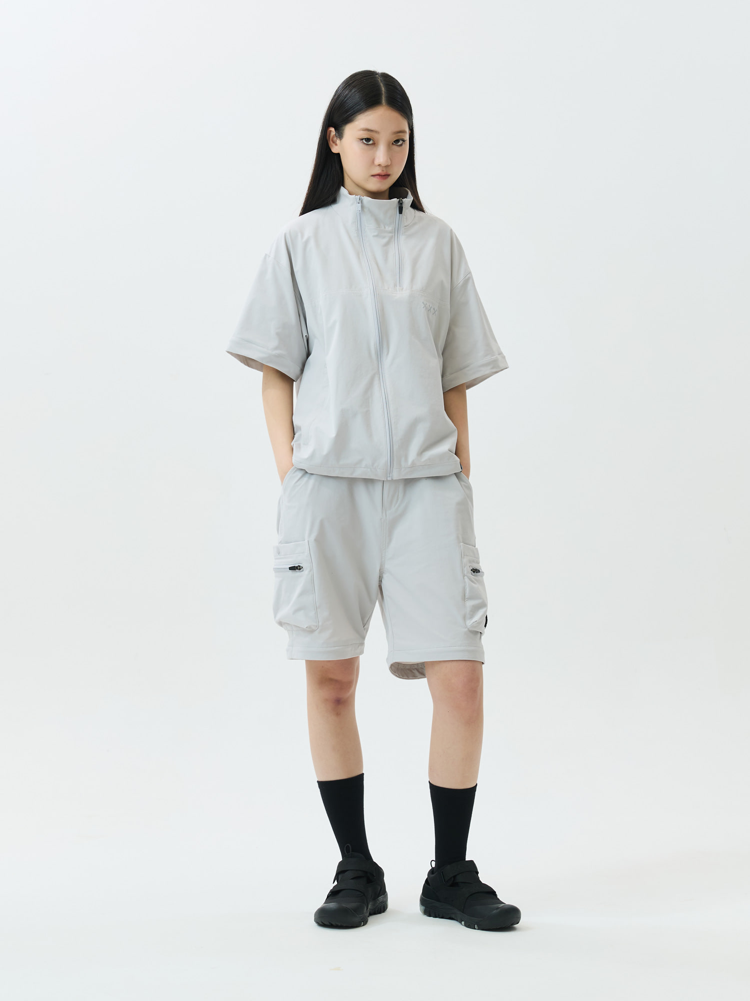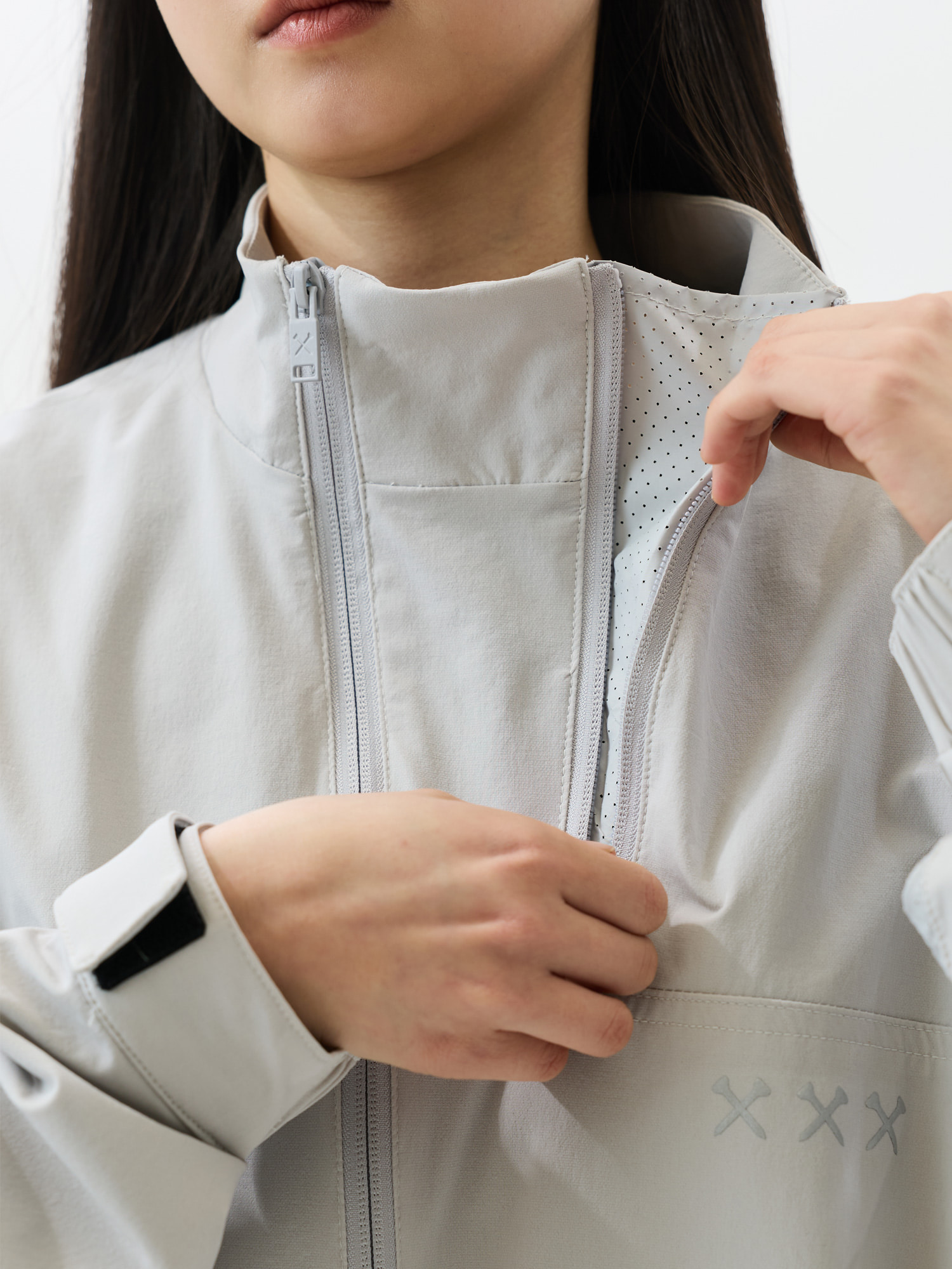 - 더블 지퍼 넥라인