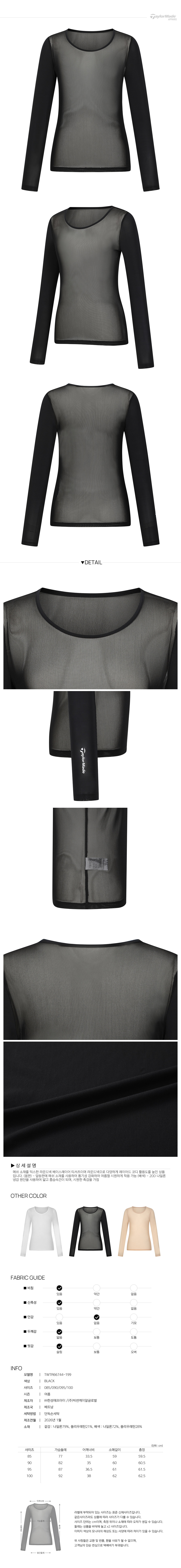 [테일러메이드] 26SS 여성 베이직 메쉬 라운드 베이스레이어 티셔츠 TWTR66744-199