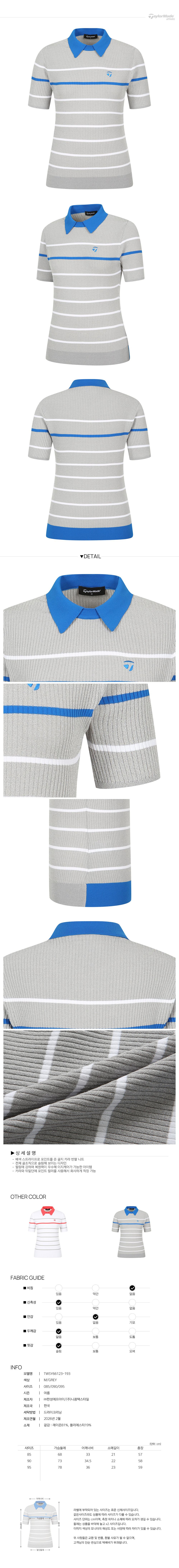 [테일러메이드] 26SS 여성 스트라이프 카라 반팔 니트 TWSY66123-193