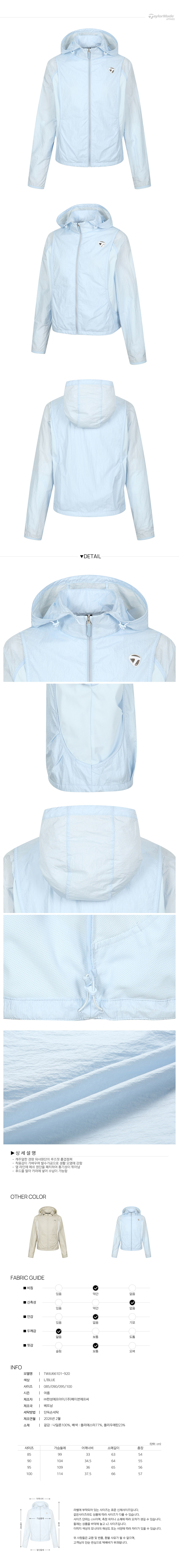 [테일러메이드] 26SS 여성 경량 루즈핏 홑겹 점퍼 TWJU66101-920