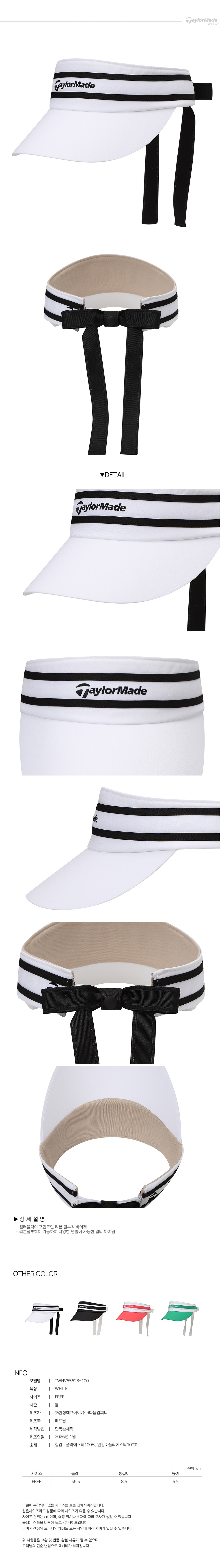 [테일러메이드] 26SS 여성 컬러 블록 로고 리본 바이저 TWHV65623-100