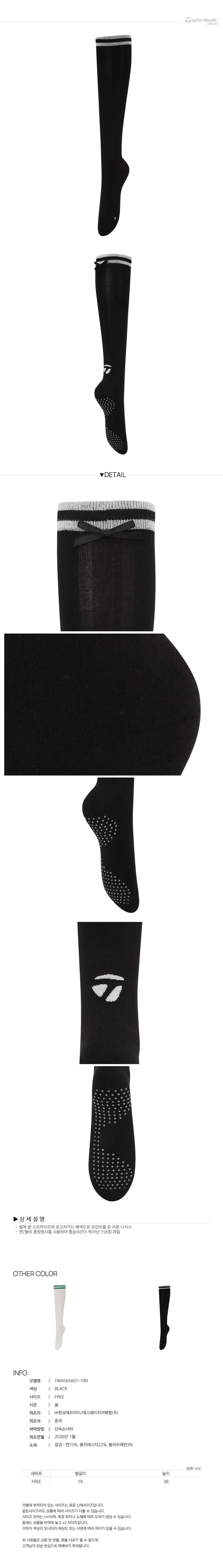 [테일러메이드] 26SS 여성 골지 메쉬 배색 리본 니삭스(38CM) TWAS65607-199