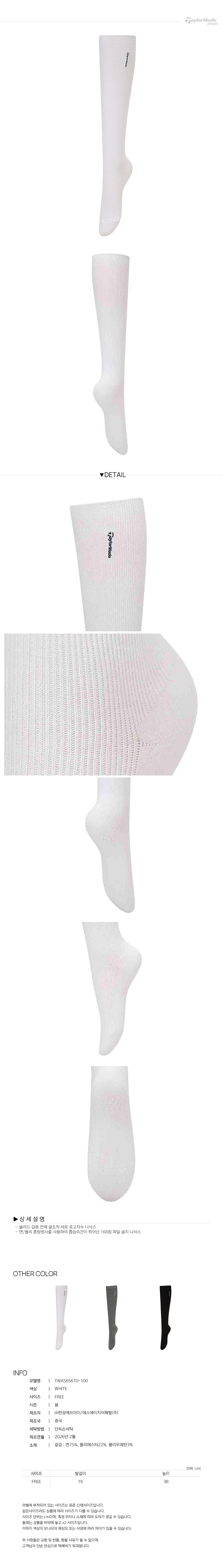 [테일러메이드] 26SS 여성 골지 니삭스 TWAS65610-100