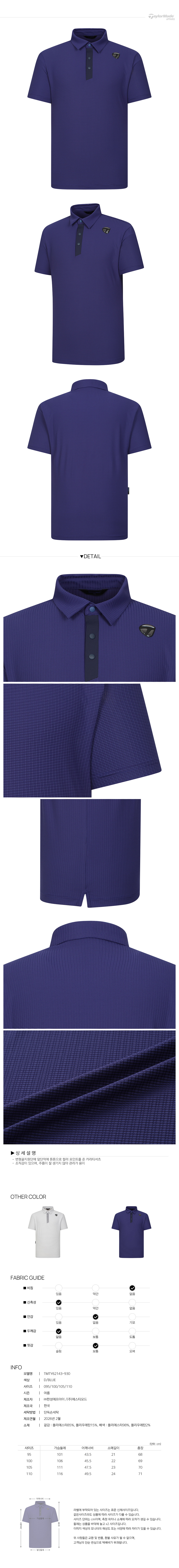 [테일러메이드] 26SS 남성 사각 조직 카라 반팔 티셔츠 TMTY62143-930