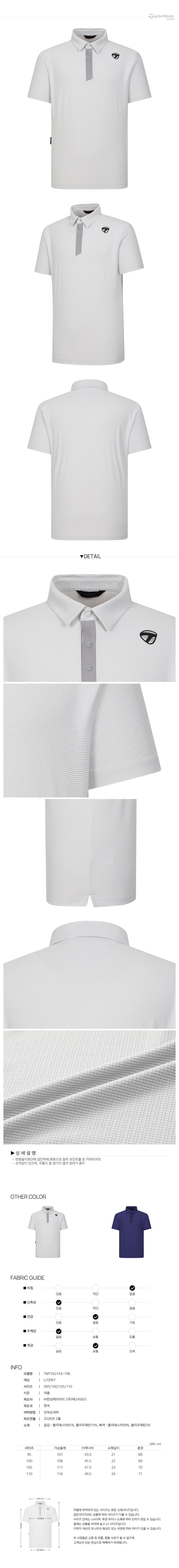 [테일러메이드] 26SS 남성 사각 조직 카라 반팔 티셔츠 TMTY62143-196