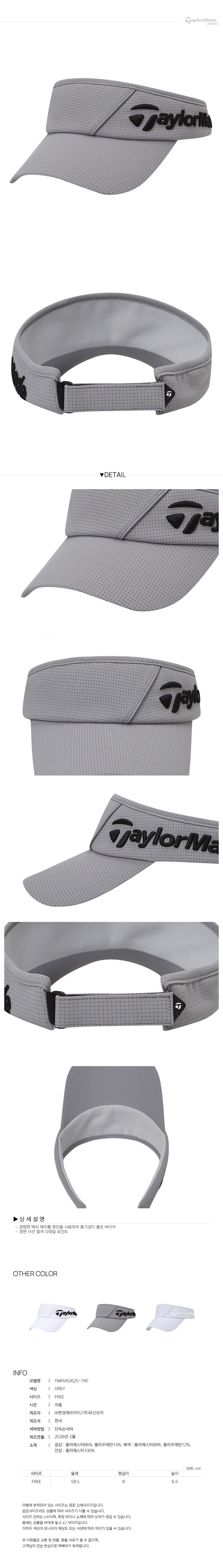 [테일러메이드] 26SS 남성 경량 사선 절개 바이저 TMHV62625-190