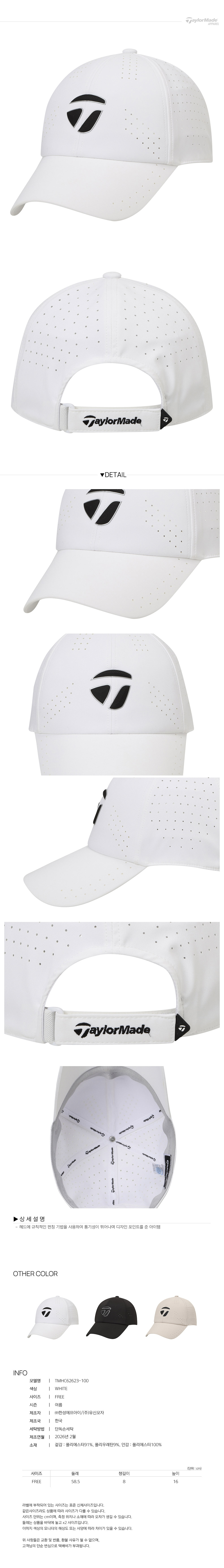 [테일러메이드] 26SS 남성 펀칭 볼캡 TMHC62623-100