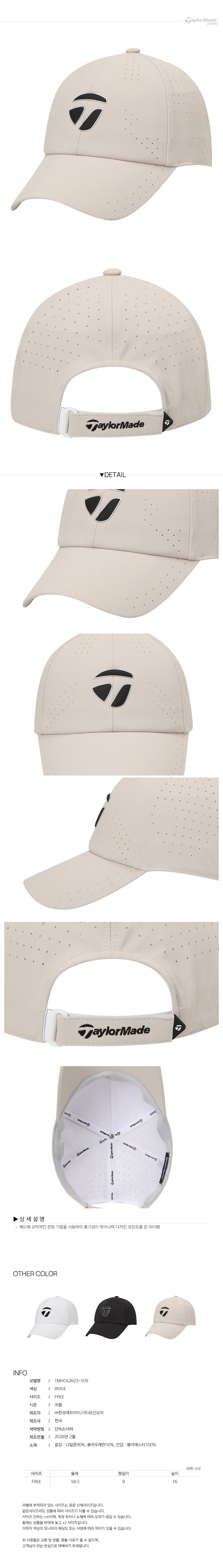 [테일러메이드] 26SS 남성 펀칭 볼캡 TMHC62623-509