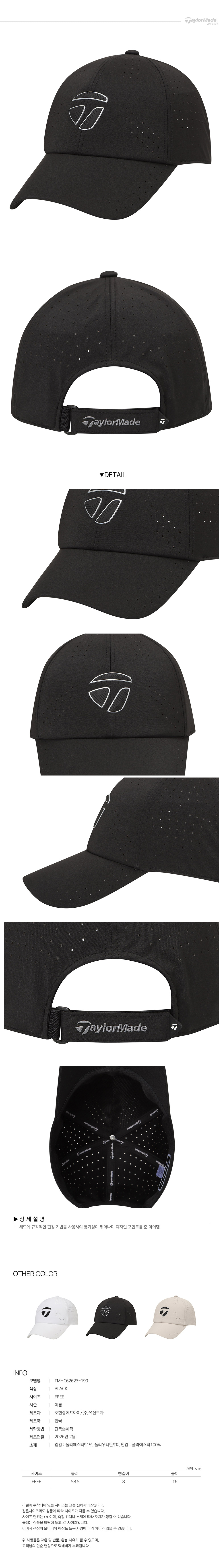 [테일러메이드] 26SS 남성 펀칭 볼캡 TMHC62623-199