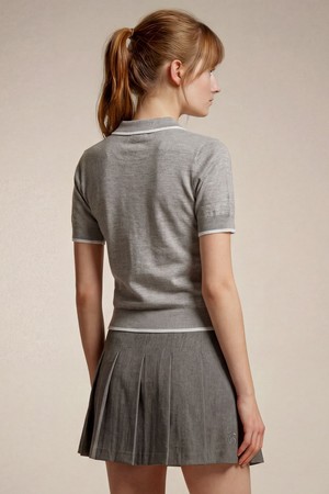 3개의 인그레이빙 버튼이 적용된 플래킷과 반소매 디자인으로, 계절에 구애받지 않고 다양한 스타일링이 가능한 경량 니트 아이템입니다.
