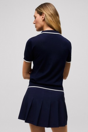 Greyson Bardot Short Sleeve Sweater Polo는 울과 실크가 고급스럽게 블렌딩된 원단으로 제작되어 부드러운 촉감과 세련된 분위기를 자아냅니다.