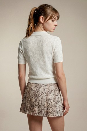 세련된 실루엣 위에 섬세한 포인텔 니트(Pointelle knit) 디테일을 더해 입체적인 질감과 여성미를 강조했습니다.