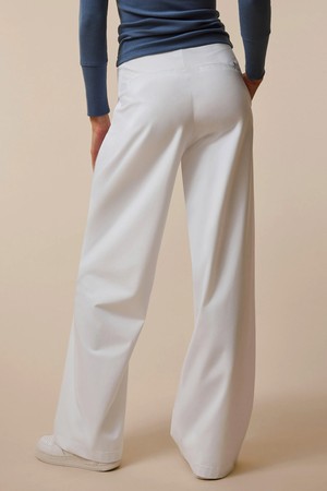 바지 옆선에 신축성이 뛰어난 리브 패널을 적용하여 와이드 팬츠 특유의 우아한 외관을 유지하면서도, 활동 시 최상의 유연함과 편안한 움직임을 보장합니다.