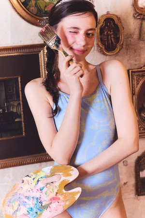 키치피치 에펠블루 브이백 원피스 수영복 페일블루 [KG1LST001]