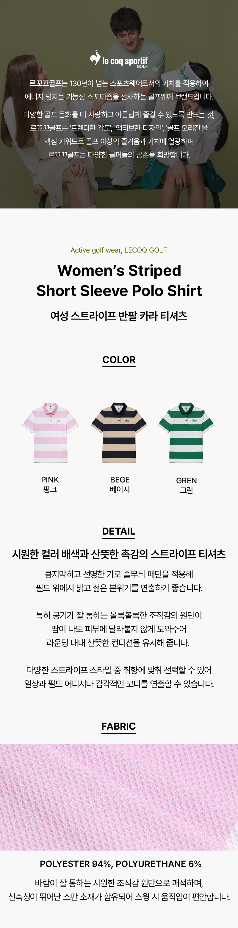 | 소재 | [BEGE]겉감:폴리에스터(94)폴리우레탄(6),[GREN]겉감:폴리에스터(94)폴리우레탄(6),[PINK]겉감:폴리에스터(94)폴리우레탄(6) (입고 시기에 따라 정보가 상이할 수 있어, 수령하신 상품의 라벨을 참고하시기 바랍니다.) |