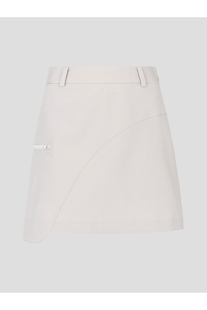세련된 베이지 컬러의 H라인 실루엣 스커트 입니다. 언발란스 절개와 지퍼포인트로 스타일리시함을 더했습니다. 로고 엠보 디테일로 은은한 포인트를 더했으며, 속바지를 내장해 활동성과 안정감을 높였습니다.