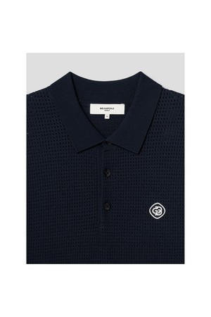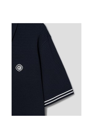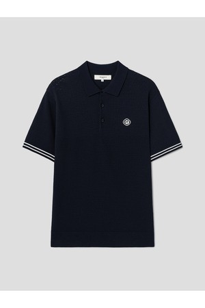 [빈폴골프] [HERITAGE] 남성 니트 스카시 텍스처 반소매 칼라티 - 네이비 (BJ6351B06R)