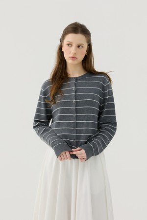 Soft Line Stripe Knit Cardigan_CHARCOAL (QW0GTSC10138)
