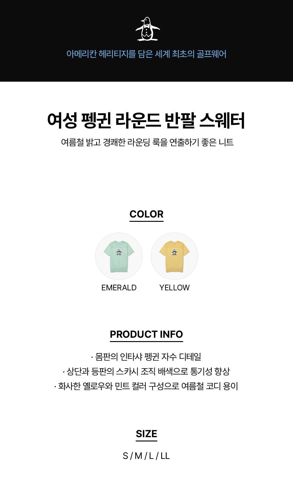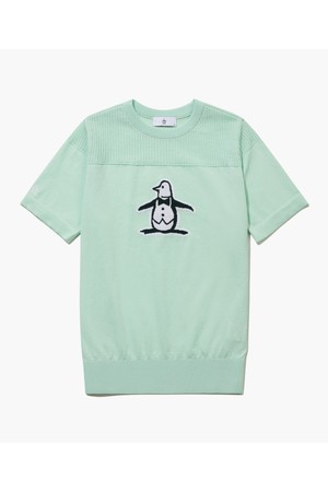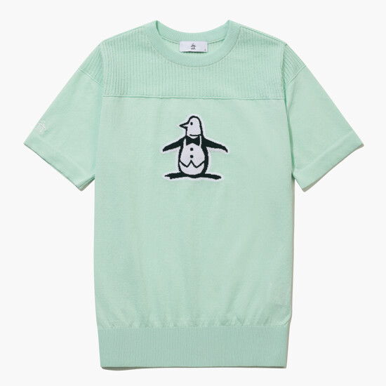 [먼싱웨어] 여성 펭귄 라운드 반팔 니트 에메랄드 MR222LSW44