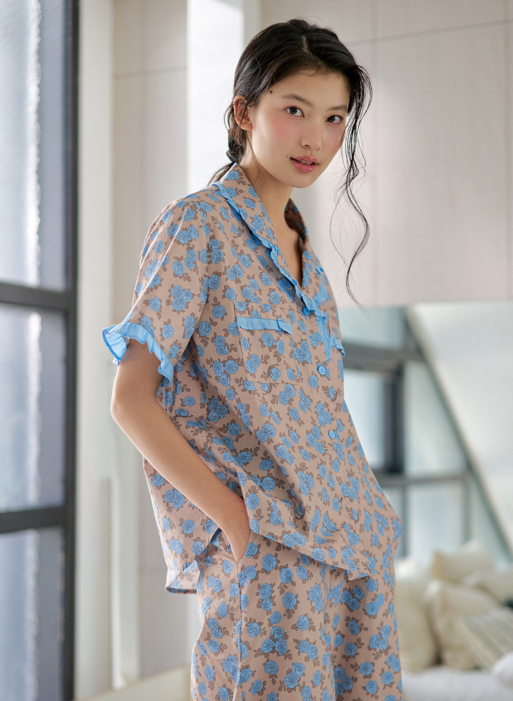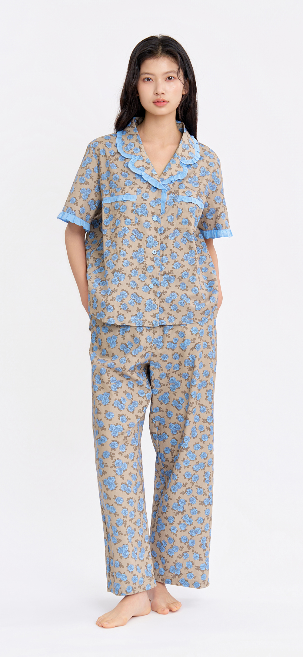 라비앙로즈 반팔 긴바지 여성페어 진베이지 (40수)