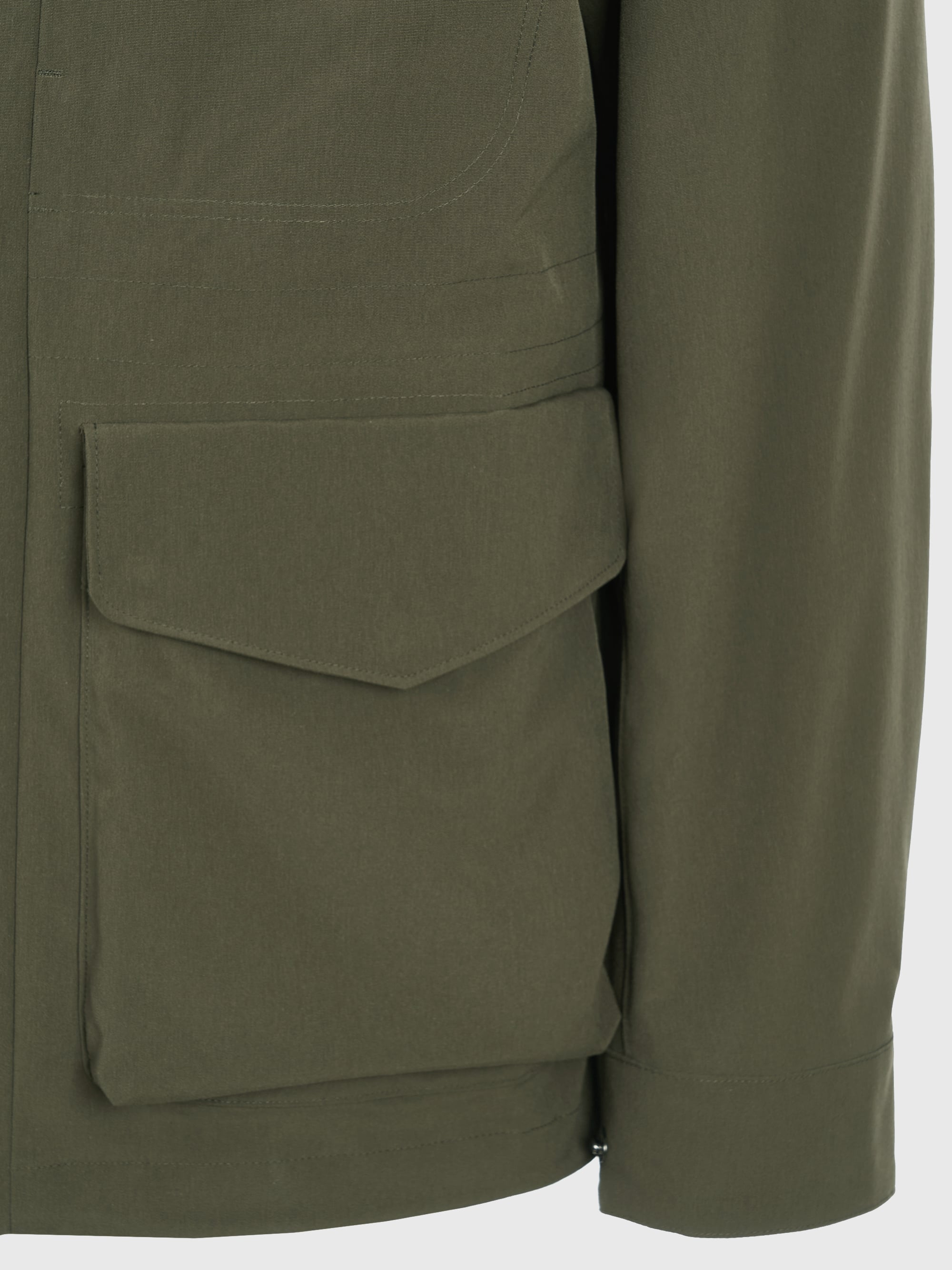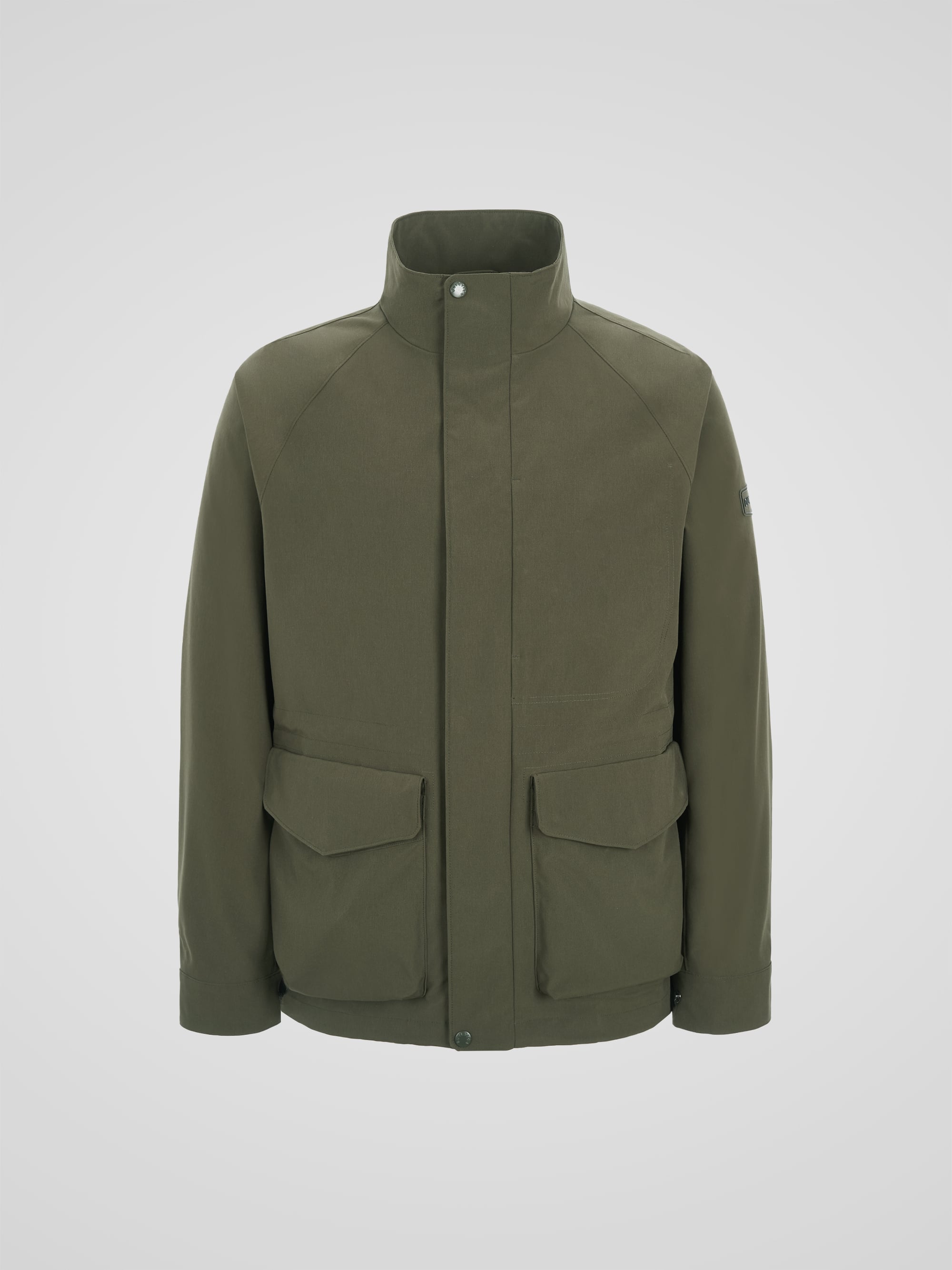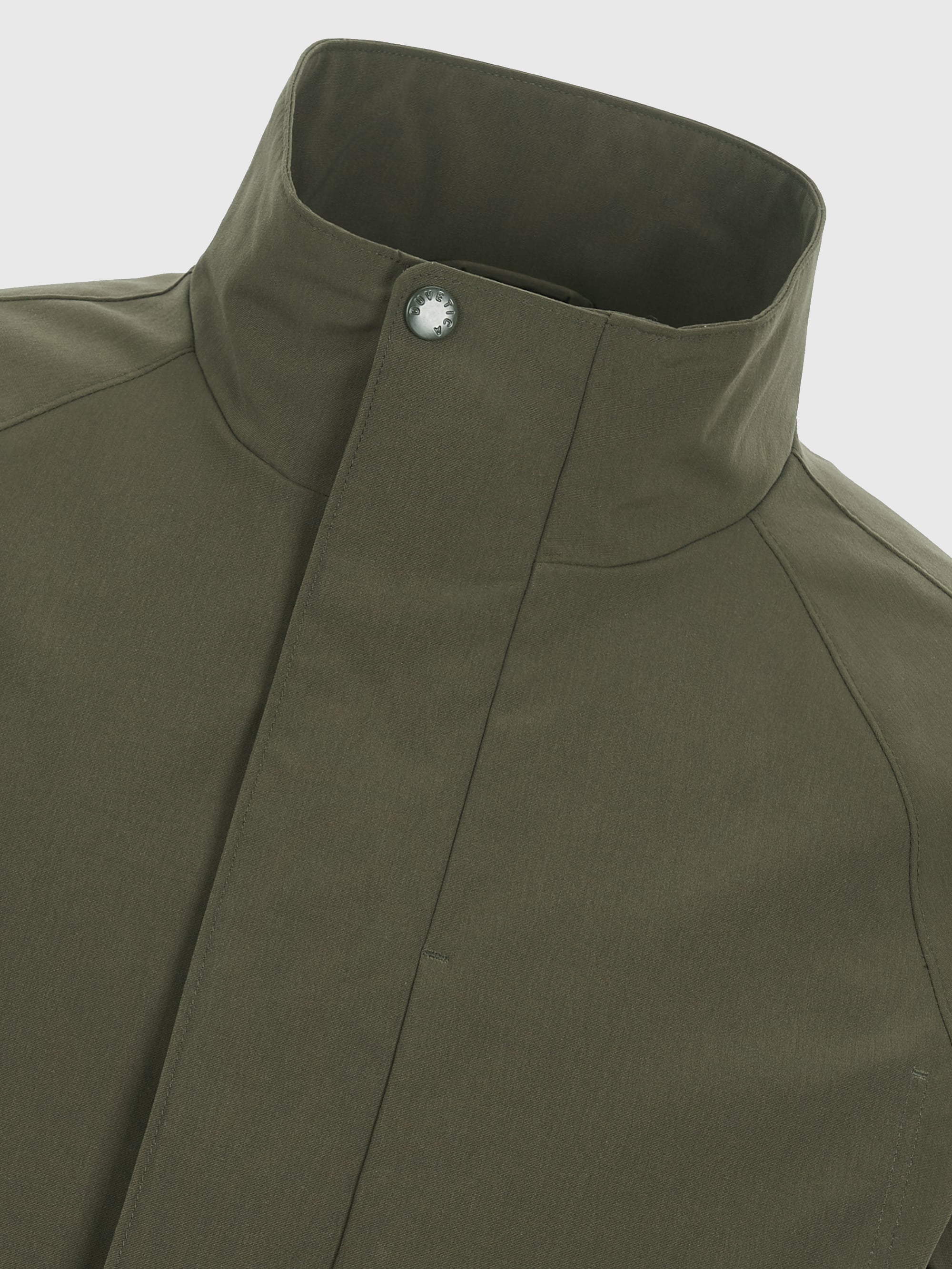 - 코튼 터치의 발수 기능성 소재를 적용한 하이넥 사파리 자켓