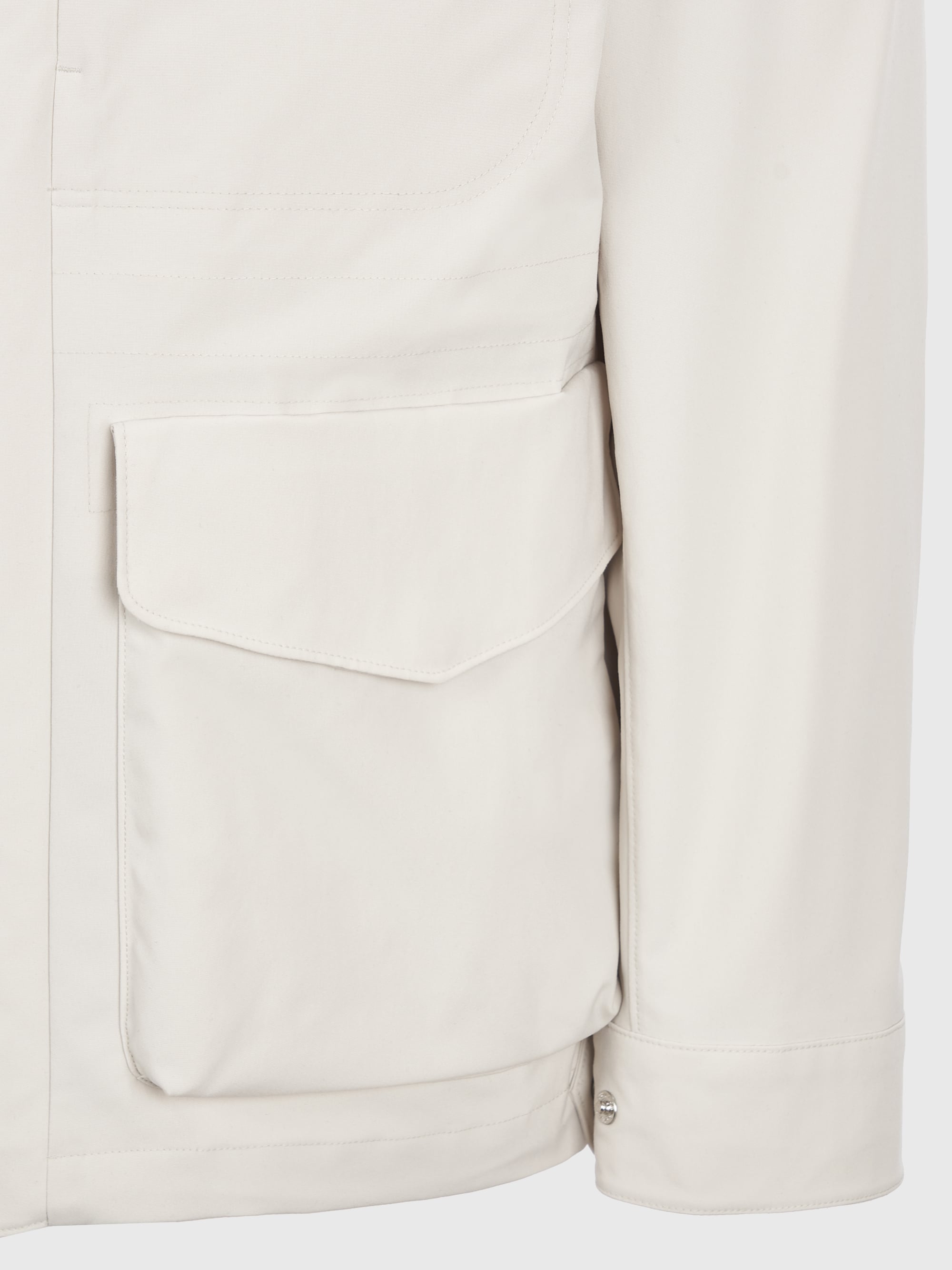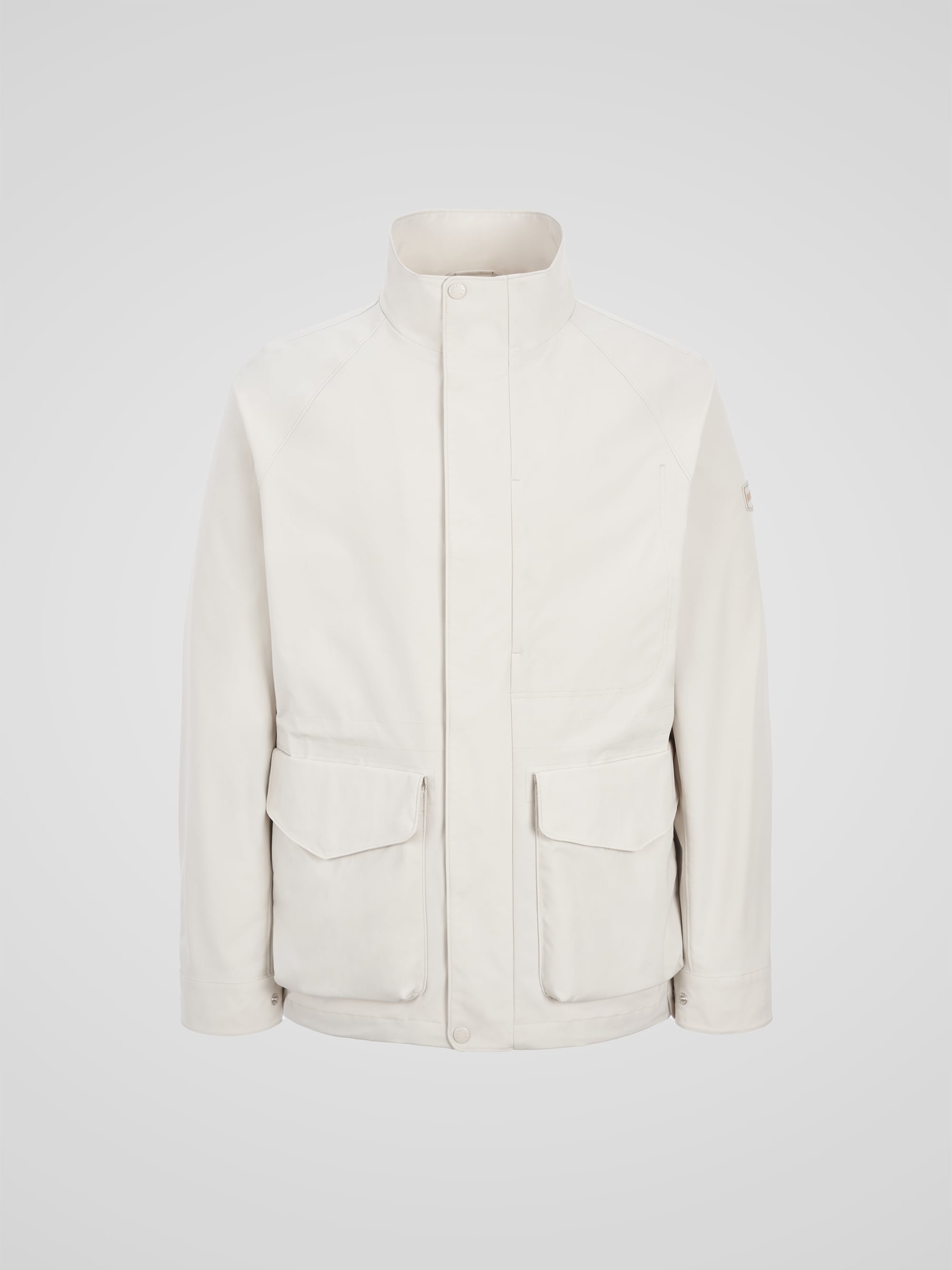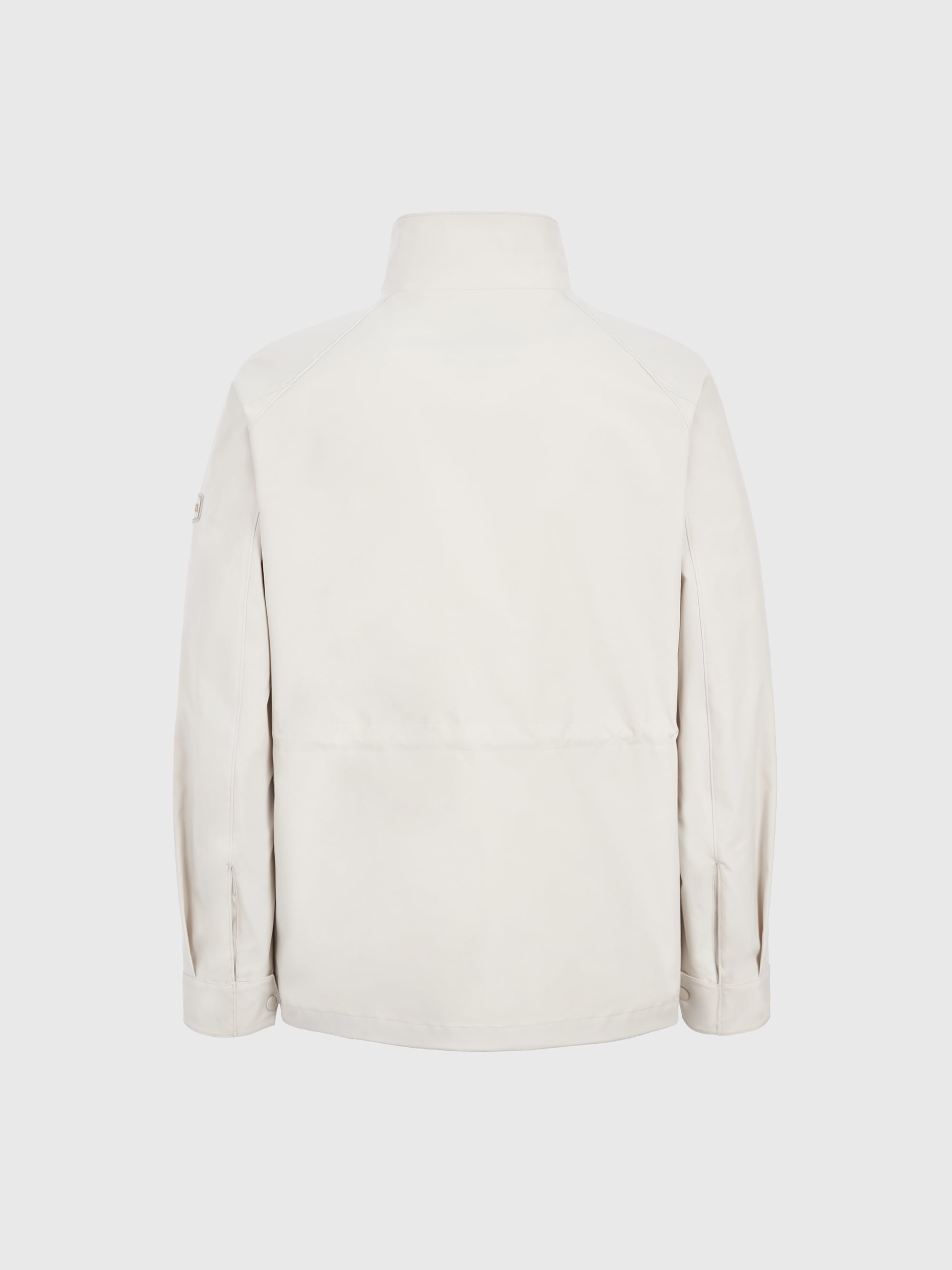 - 코튼 터치의 발수 기능성 소재를 적용한 하이넥 사파리 자켓