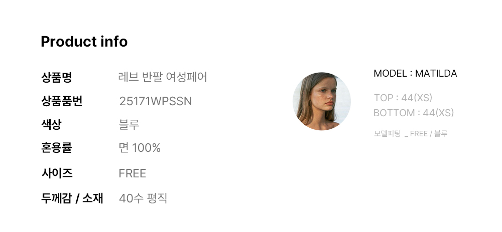 레브 반팔 여성페어 블루 (40수)