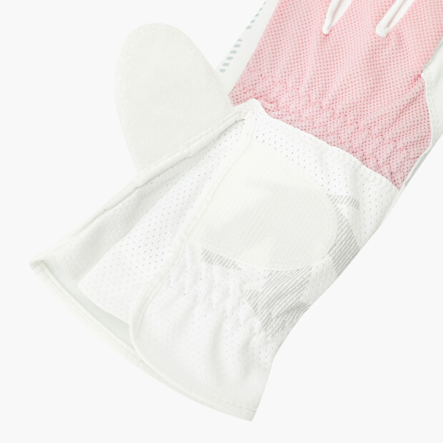 손등 전체에 적용된 메쉬 원단이 우수한 스트레치와 쾌적한 통기성을 제공합니다.