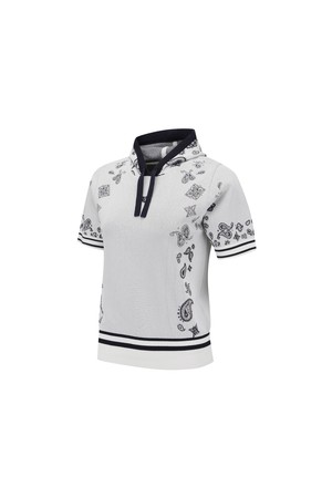 [ANEW GOLF] WOMEN PAISLEY HOODED SHORT SLEEVE SWEATER_WH