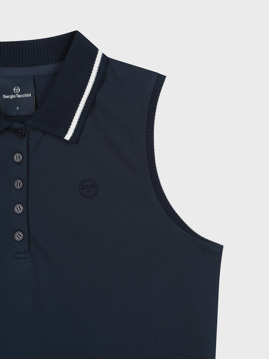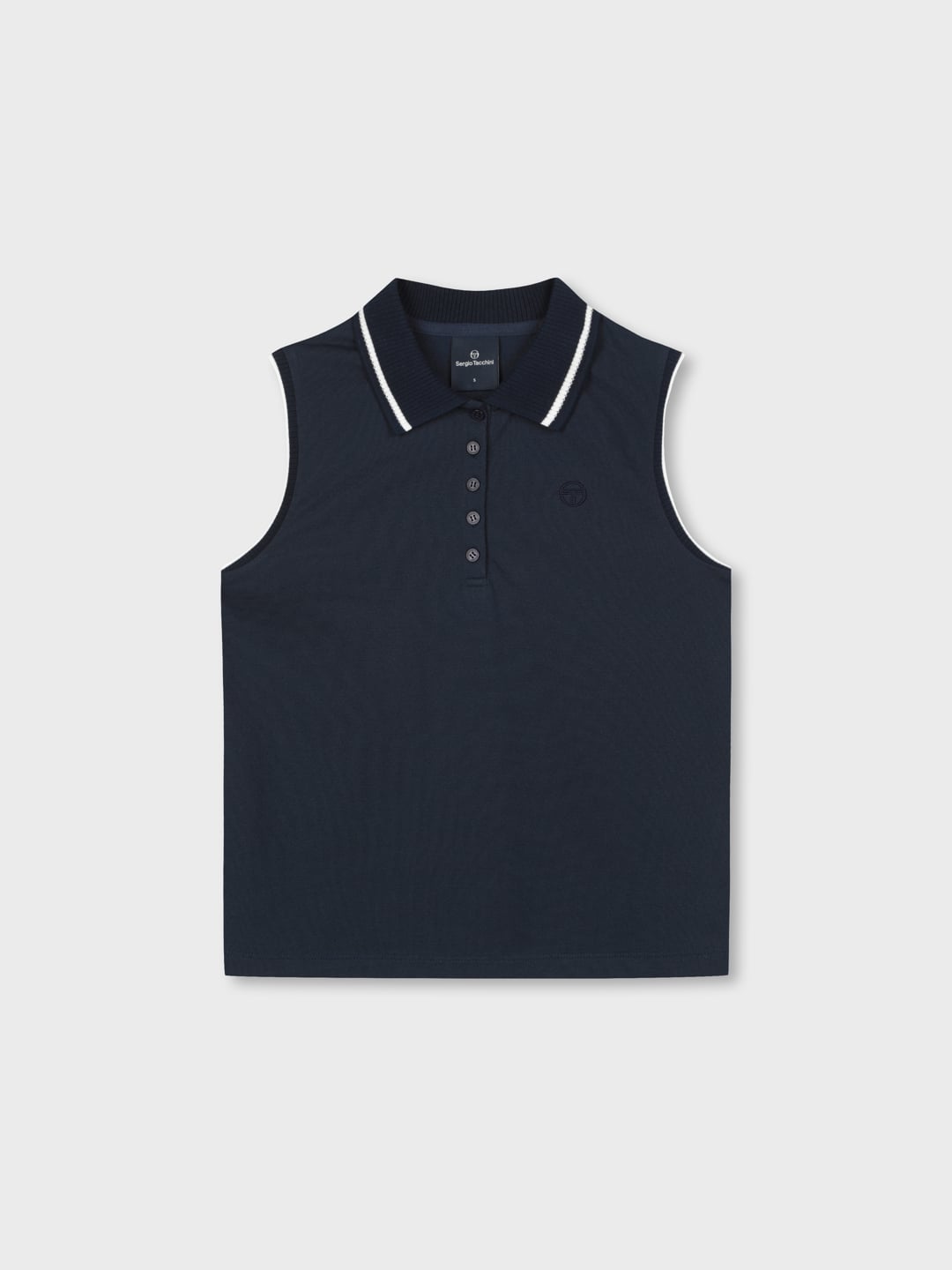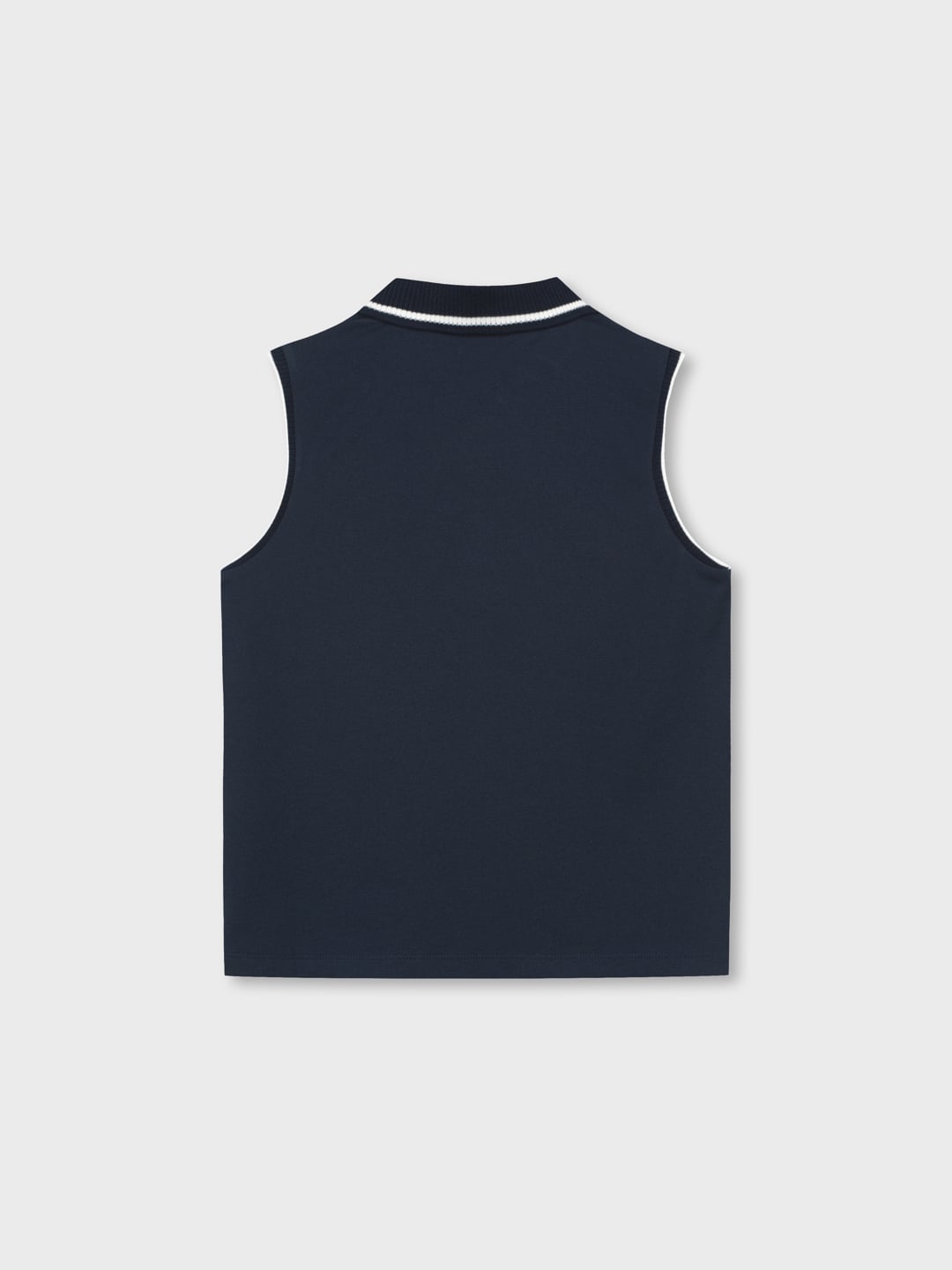 - - 세련된 핀 스트라이프 리브 조직 카라로 클래식하면서도 스포티한 무드를 주는 슬리브리스 폴로