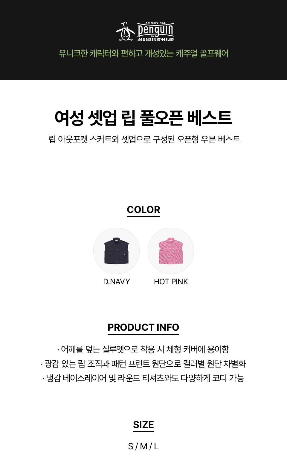 [먼싱웨어] 여성 셋업 립 풀오픈 베스트 핫핑크 MR222PWV41