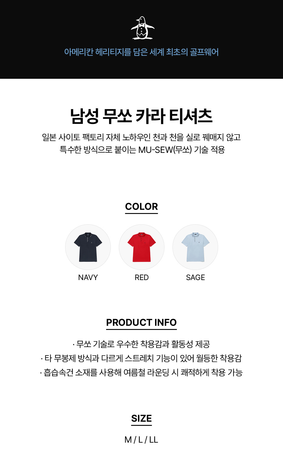 [먼싱웨어] 남성 무쏘 카라 티셔츠 네이비 MR211MTS43