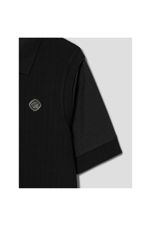 [빈폴골프][B_under] 여성 니트 하이브리드 칼라 반소매 티셔츠 - 블랙(BJ6342L155)