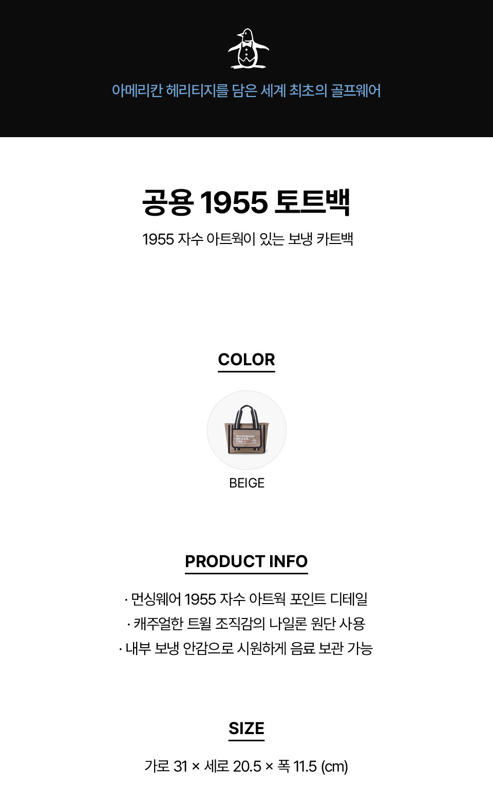 [먼싱웨어] 공용 1955 토트백 베이지 MR112LBG21